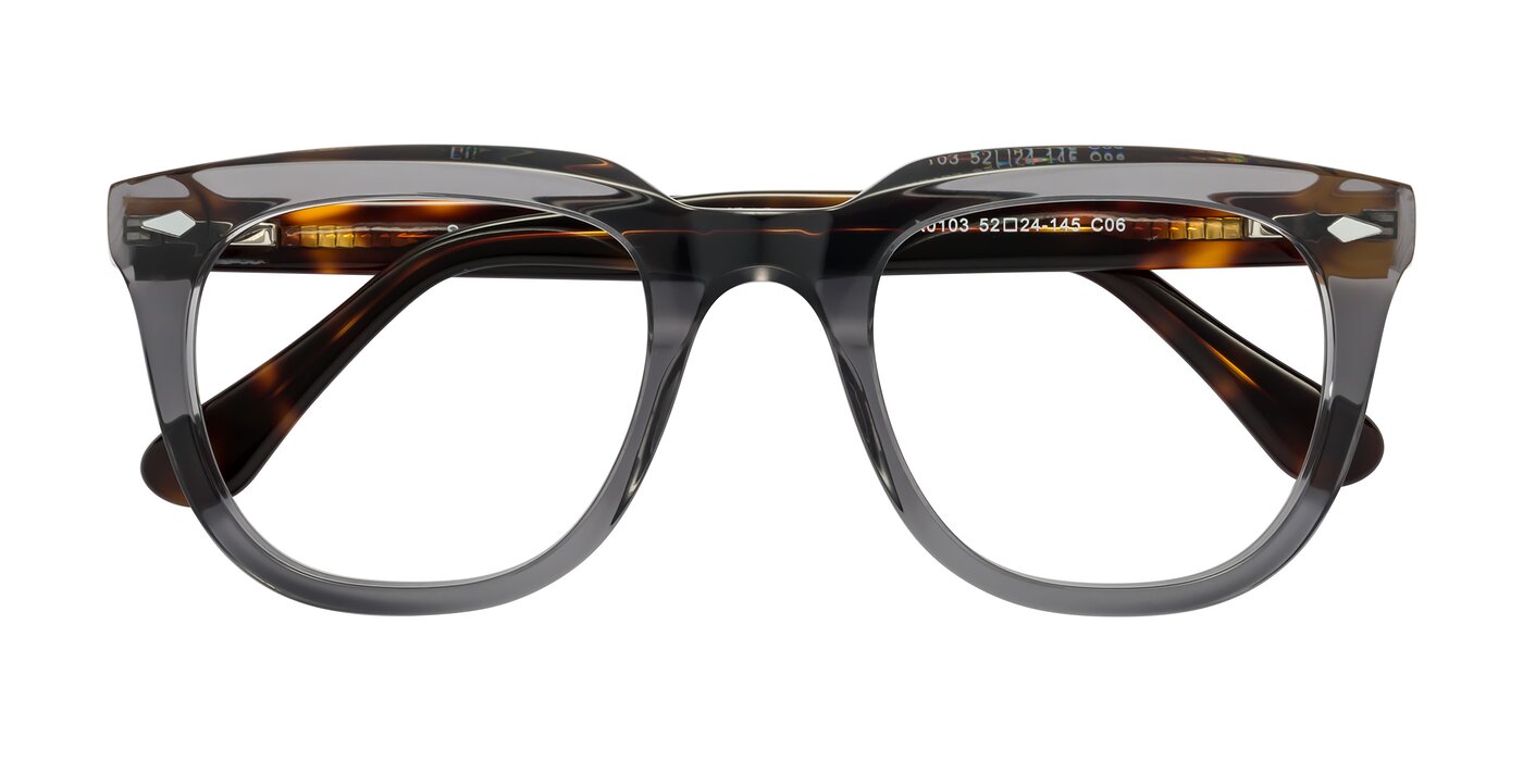 TR90 is a flexible, lightweight plastic material often used in gray glasses. Known for its durability and resistance to bending, TR90 frames are perfect for those with active lifestyles. They’re also incredibly comfortable, as the material molds slightly to the shape of your face for a custom fit.