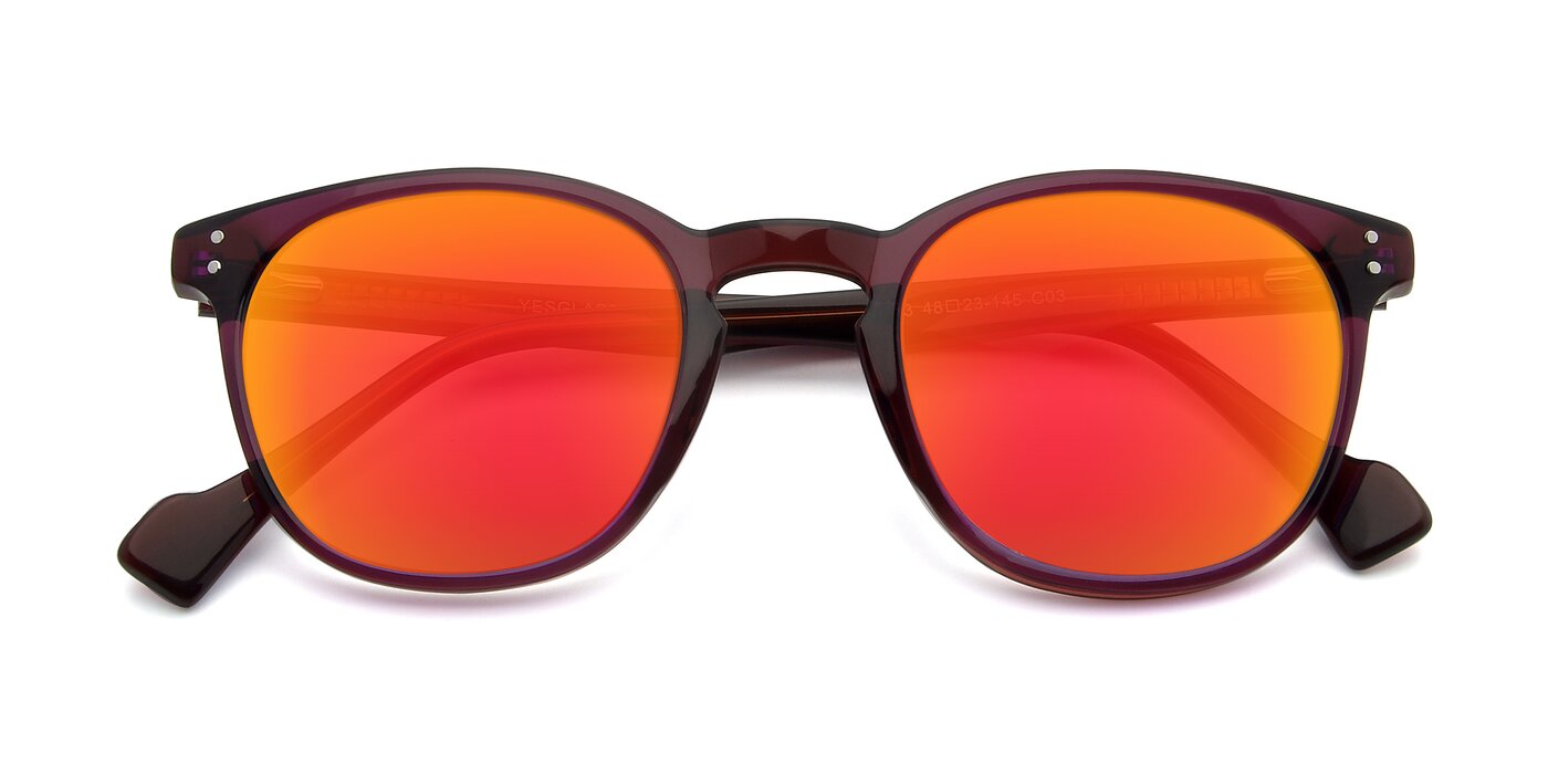 Clear Narrow Acetate Trapezoid Mirrored Sunglasses with Red Gold Sunwear Lenses