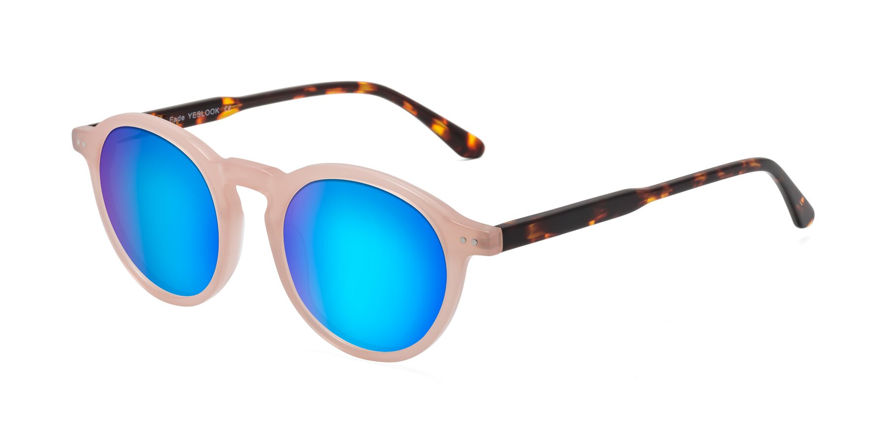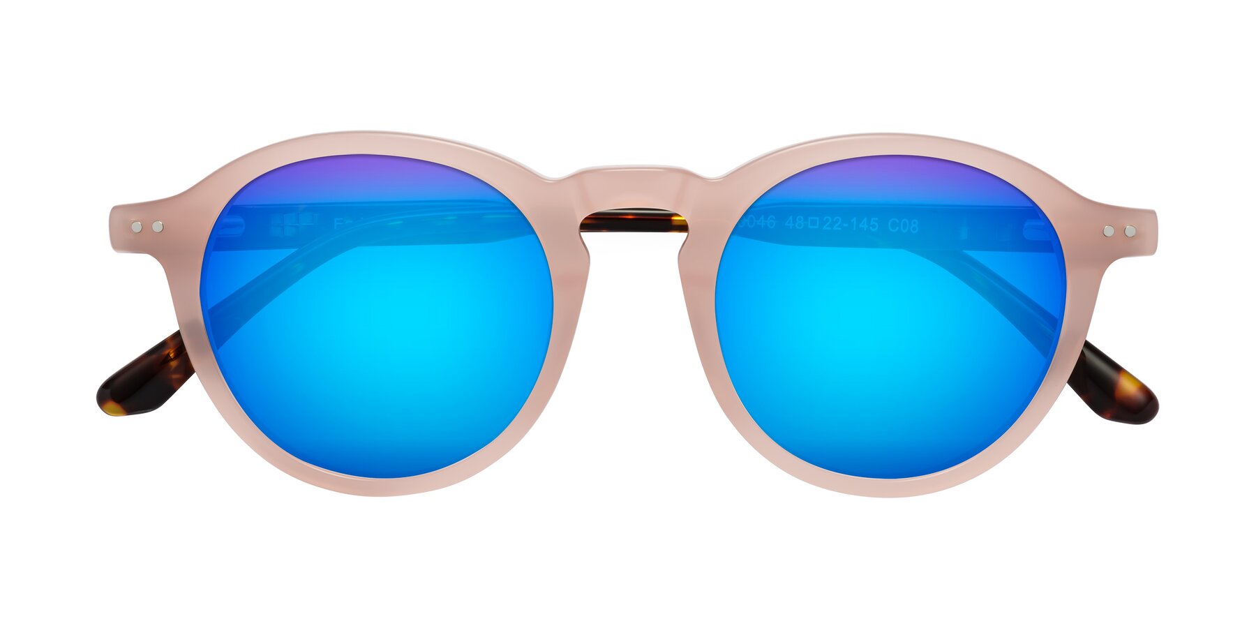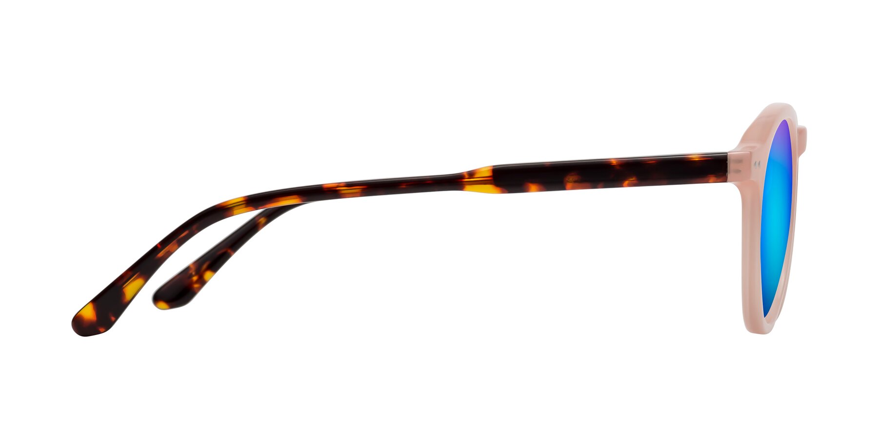 Peach/Tortoise Retro-Vintage Keyhole Bridge Round Mirrored Sunglasses with Blue Sunwear Lenses
