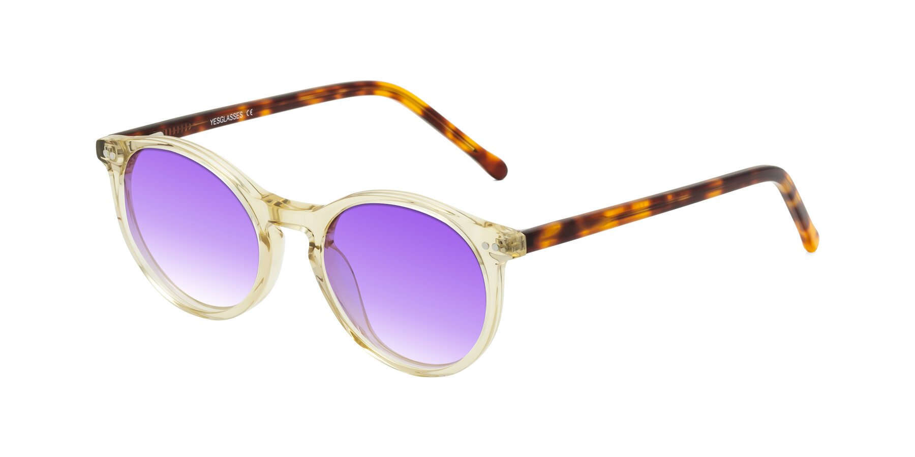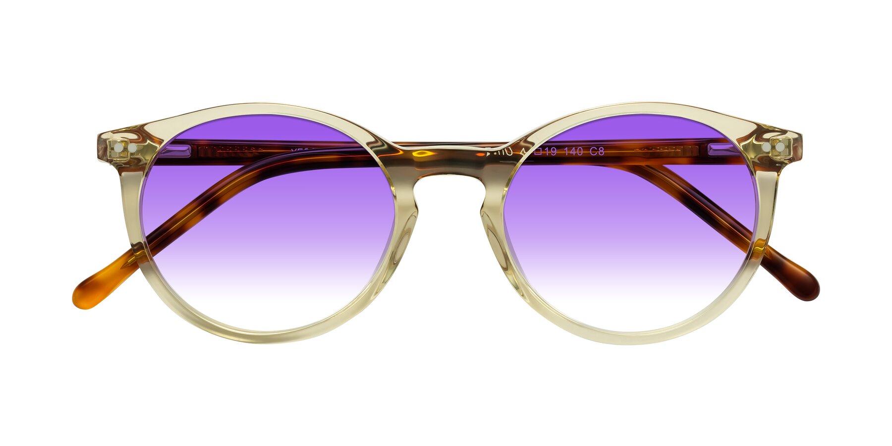 Champagne/Tortoise Narrow Acetate Trapezoid Gradient Sunglasses with Purple Sunwear Lenses
