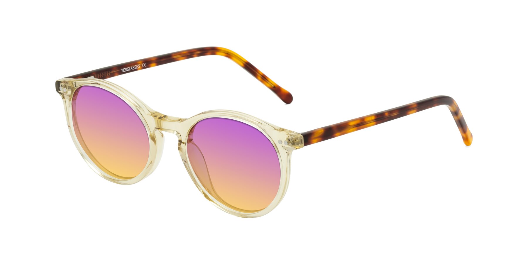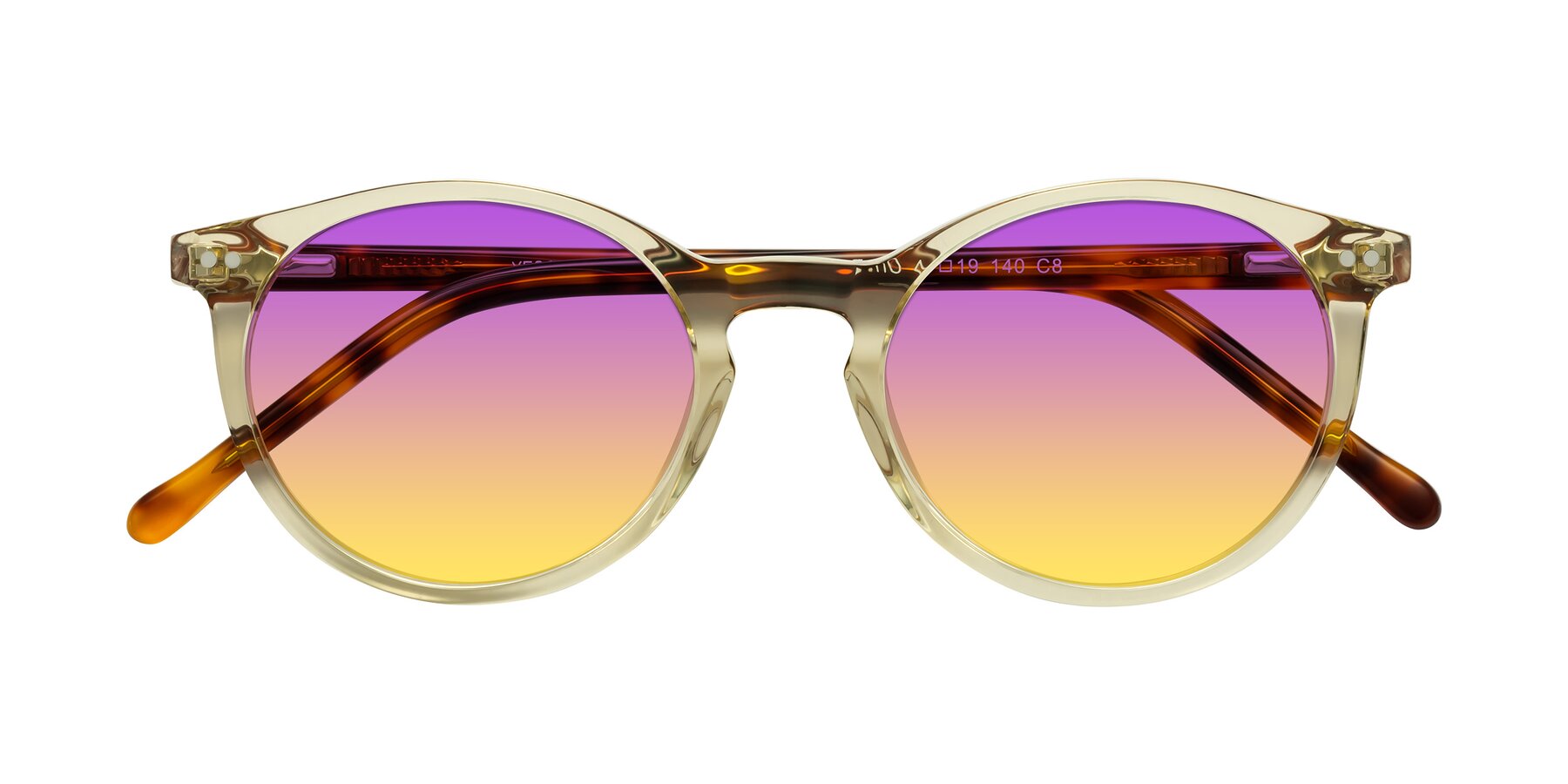 Champagne/Tortoise Narrow Acetate Trapezoid Gradient Sunglasses with Purple / Yellow Sunwear Lenses