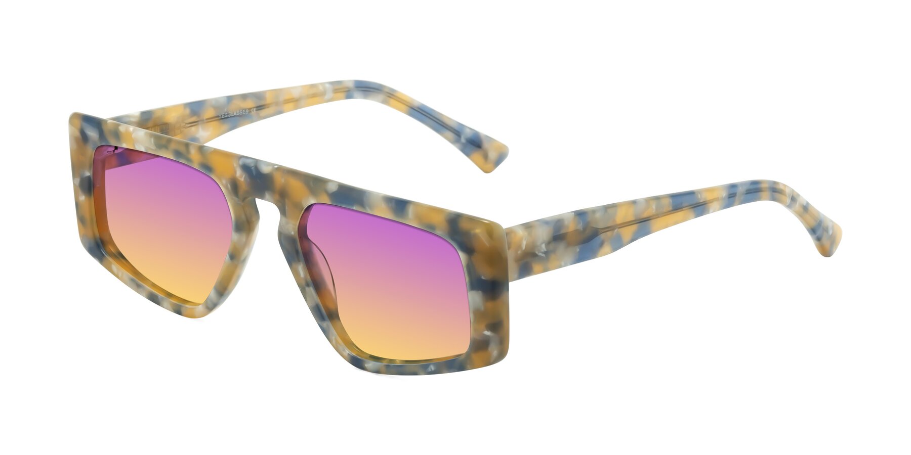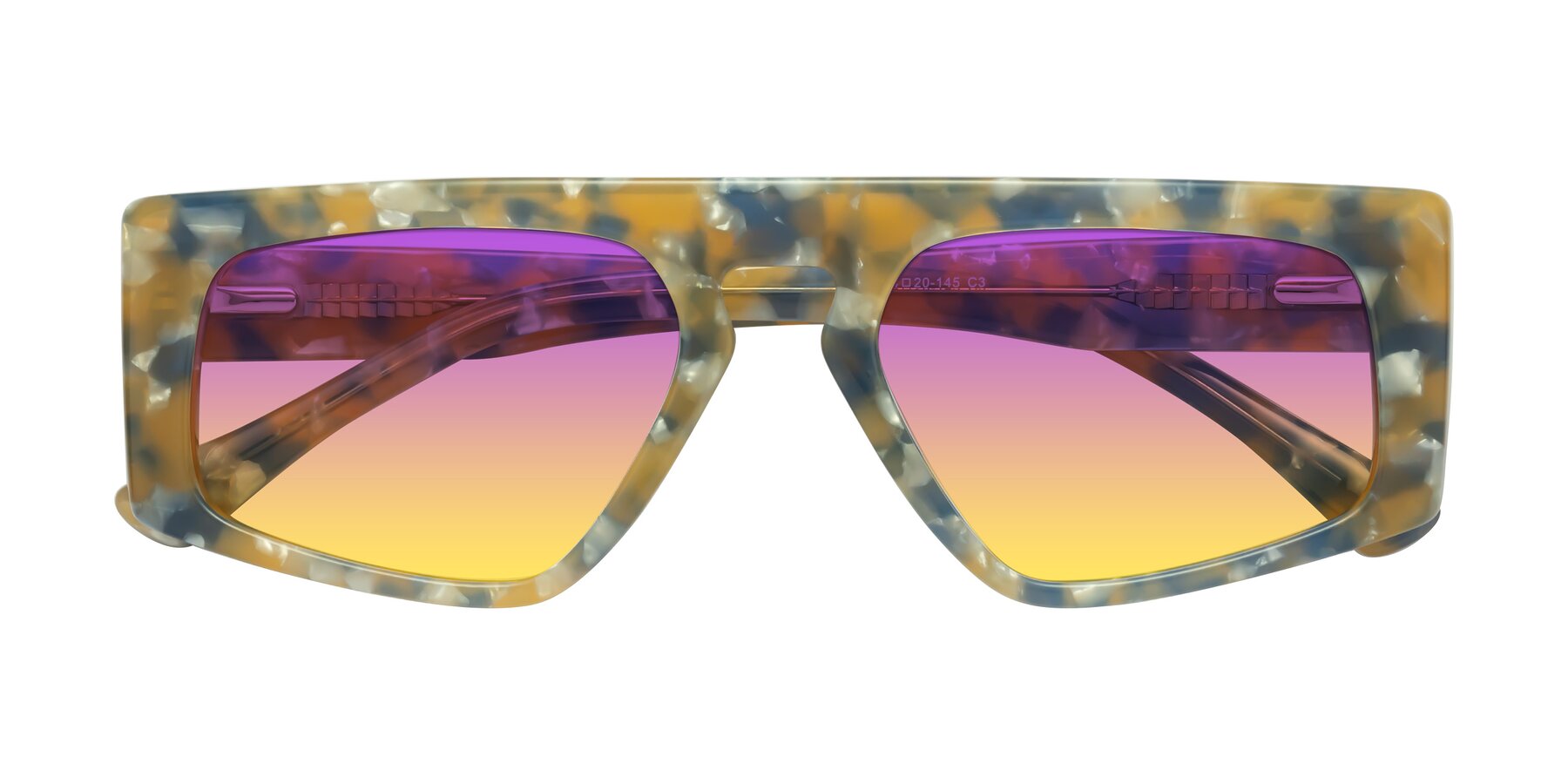 Granite Tortoise Keyhole Bridge Geek-Chic Geometric Gradient Sunglasses with Purple / Yellow Sunwear Lenses