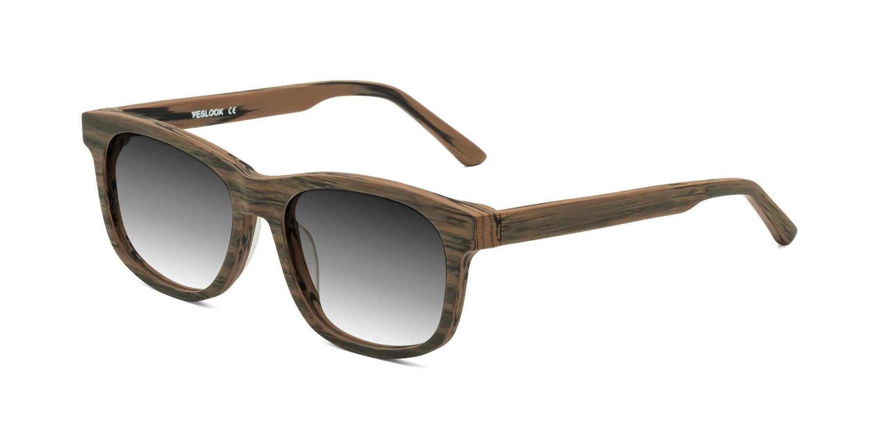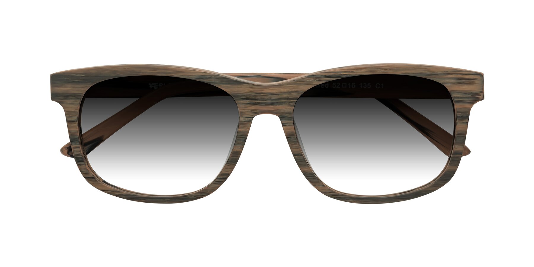 Burnt Tan Woodgrain Narrow Acetate Rectangle Gradient Sunglasses with Gray Sunwear Lenses