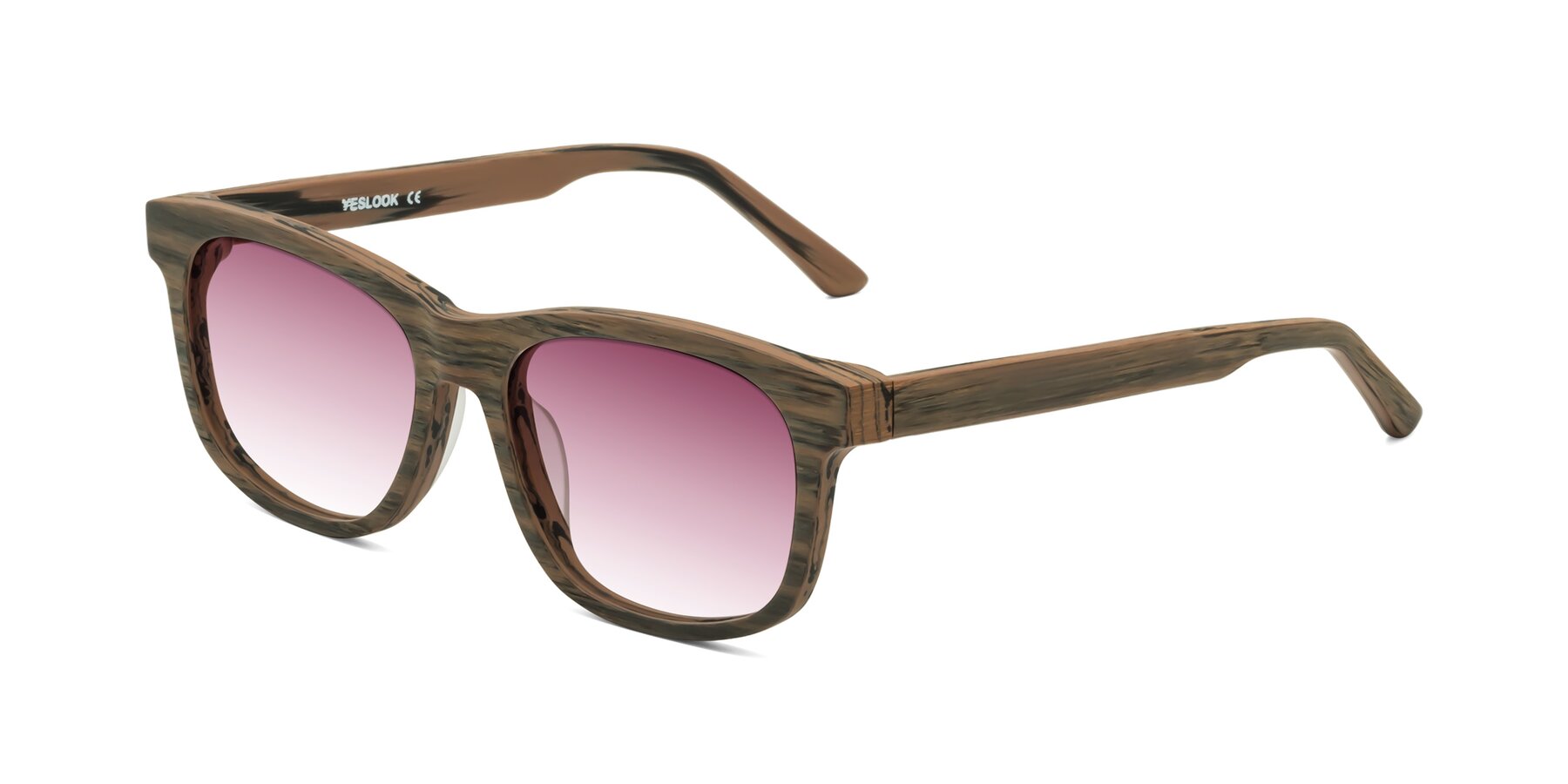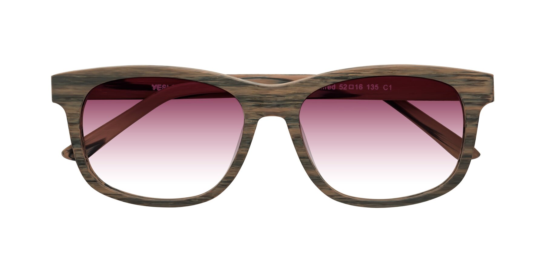 Burnt Tan Woodgrain Narrow Acetate Rectangle Gradient Sunglasses with Wine Sunwear Lenses
