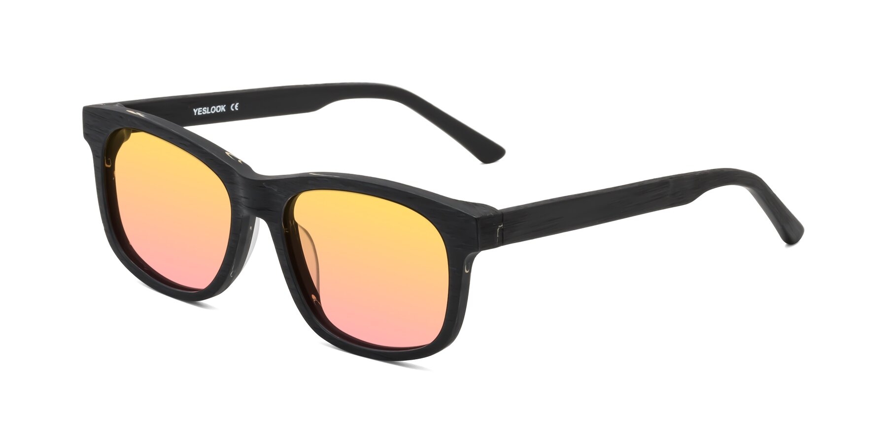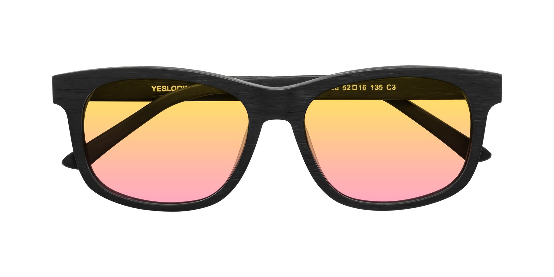 Black Woodgrain Narrow Acetate Rectangle Gradient Sunglasses with Yellow / Pink Sunwear Lenses