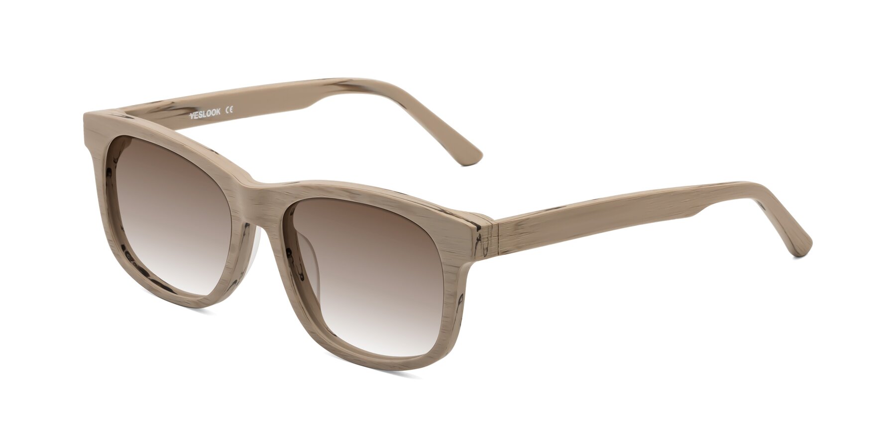 Pale Mauve Woodgrain Narrow Acetate Rectangle Gradient Sunglasses with Brown Sunwear Lenses