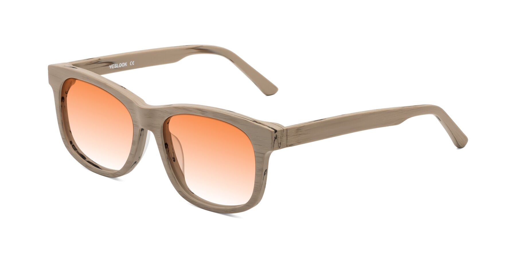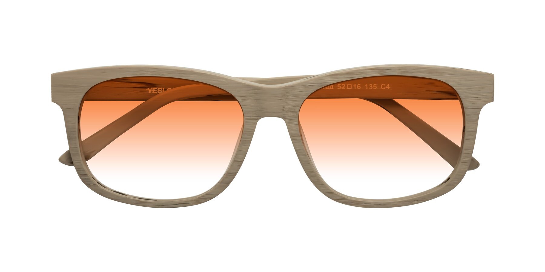 Pale Mauve Woodgrain Narrow Acetate Rectangle Gradient Sunglasses with Orange Sunwear Lenses