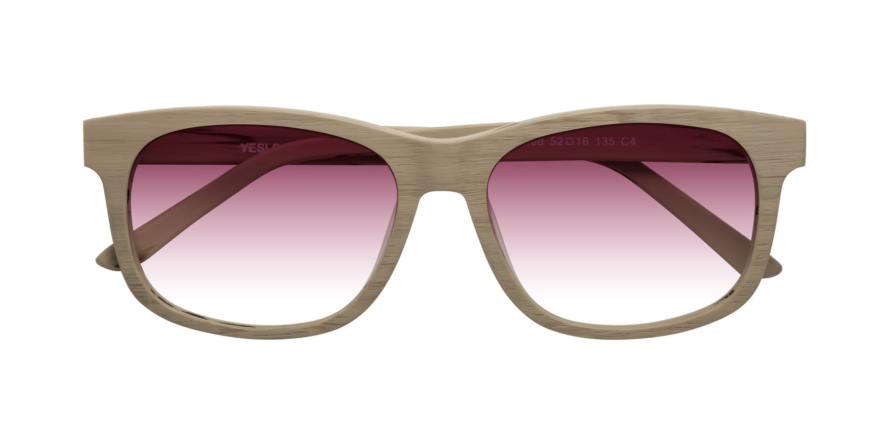 Pale Mauve Woodgrain Narrow Acetate Rectangle Gradient Sunglasses with Wine Sunwear Lenses