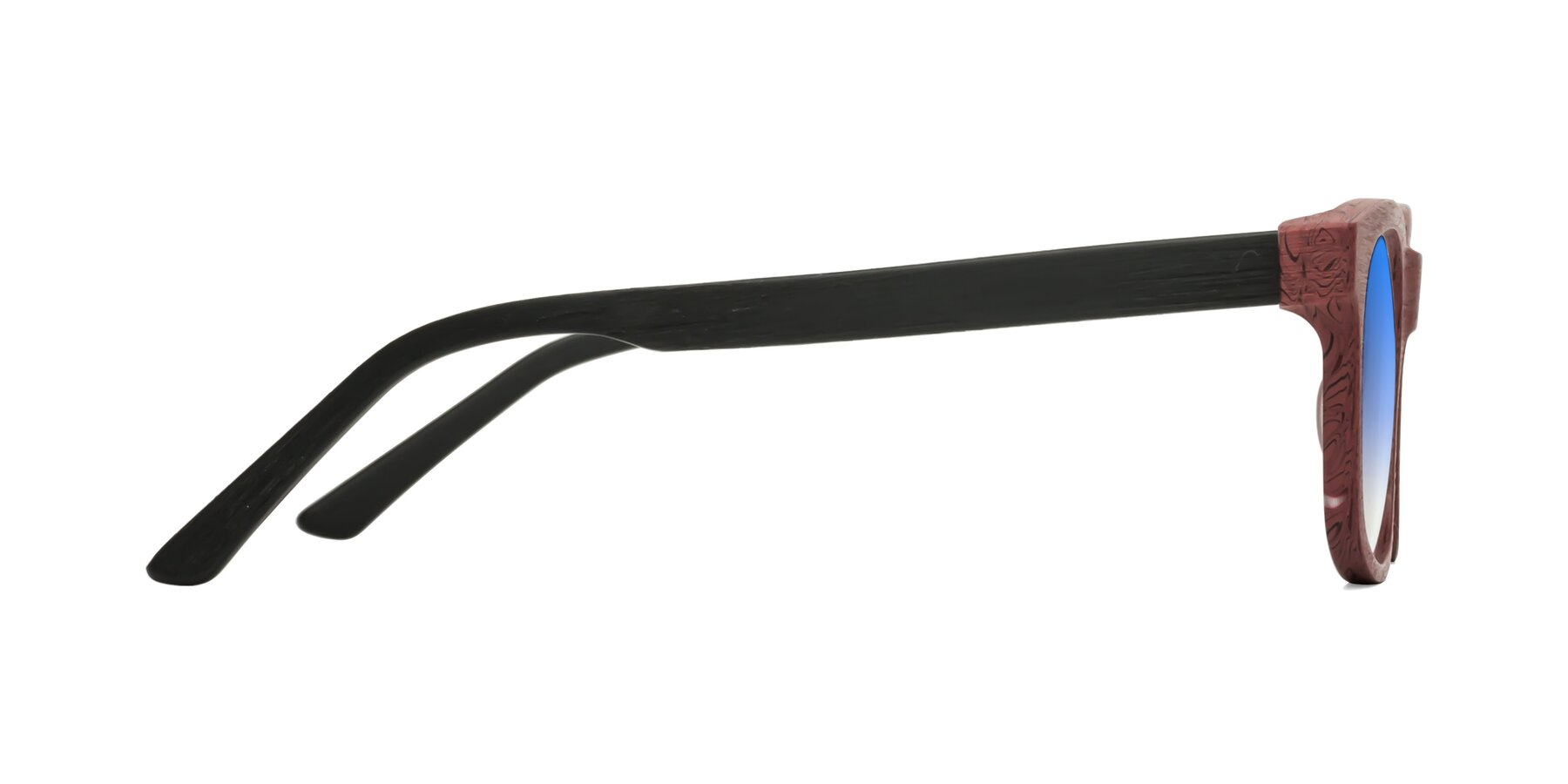 Burgundy/Black Woodgrain Narrow Acetate Rectangle Gradient Sunglasses with Blue Sunwear Lenses