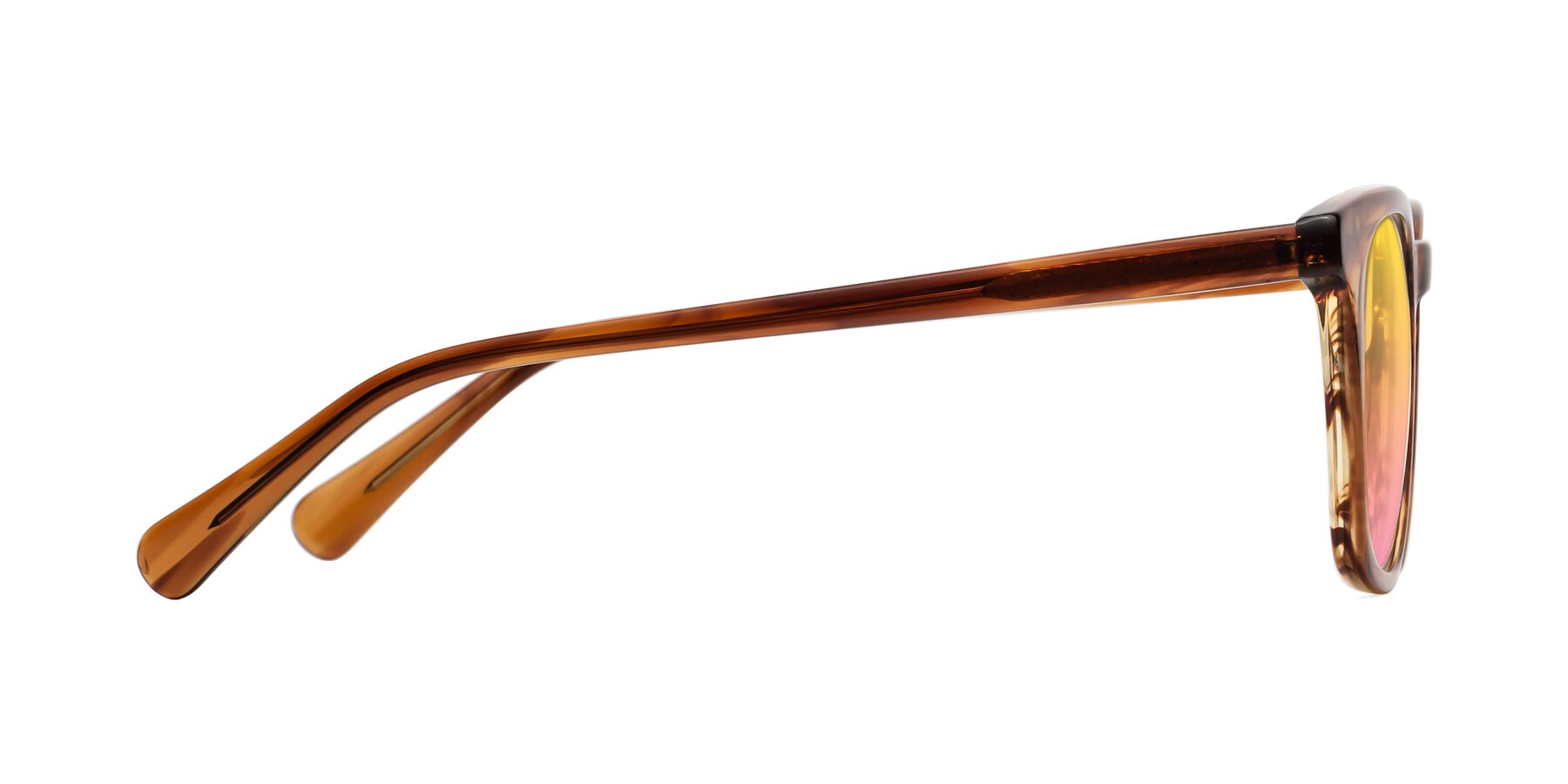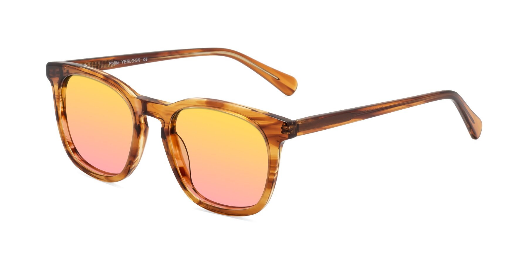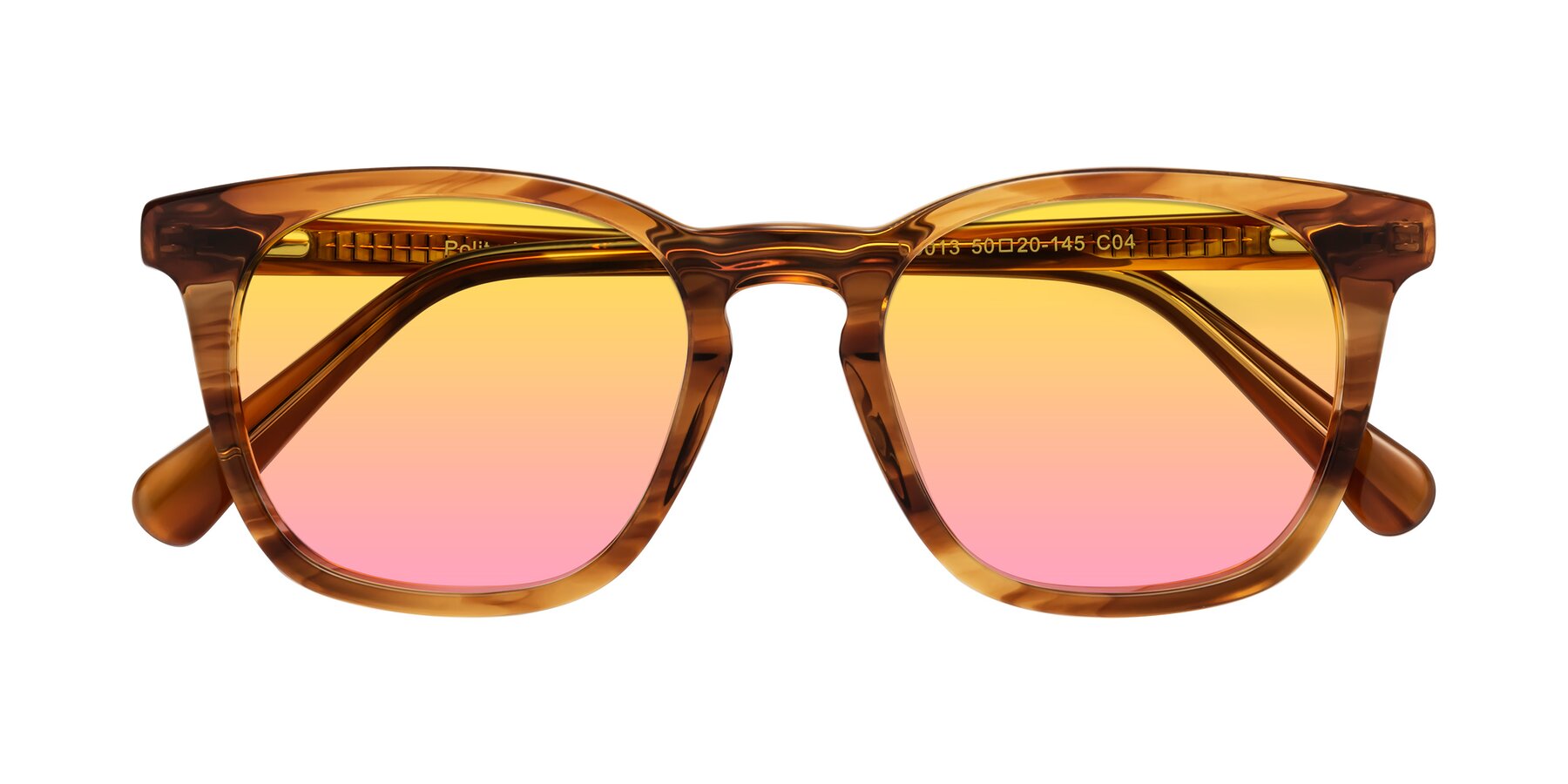Amber Striped Keyhole Bridge Spring Hinges Trapezoid Gradient Sunglasses with Yellow / Pink Sunwear Lenses