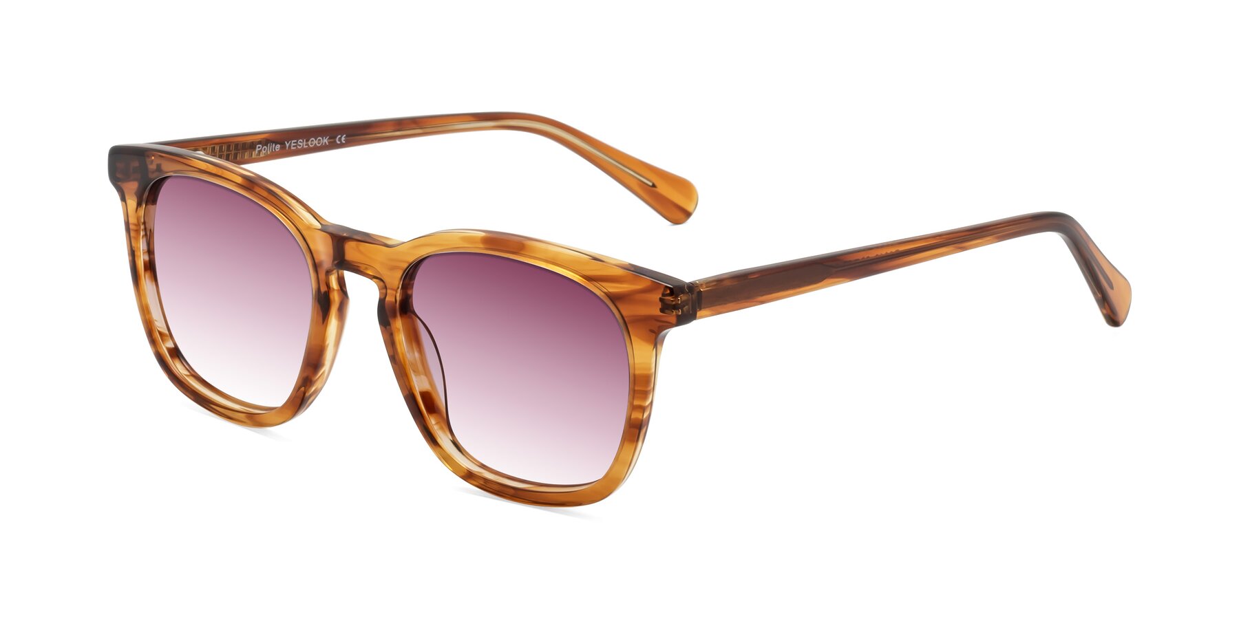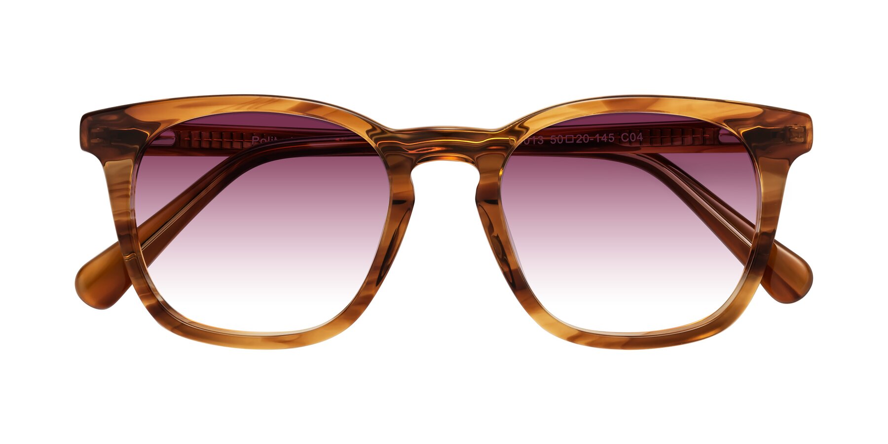 Amber Striped Keyhole Bridge Spring Hinges Trapezoid Gradient Sunglasses with Wine Sunwear Lenses