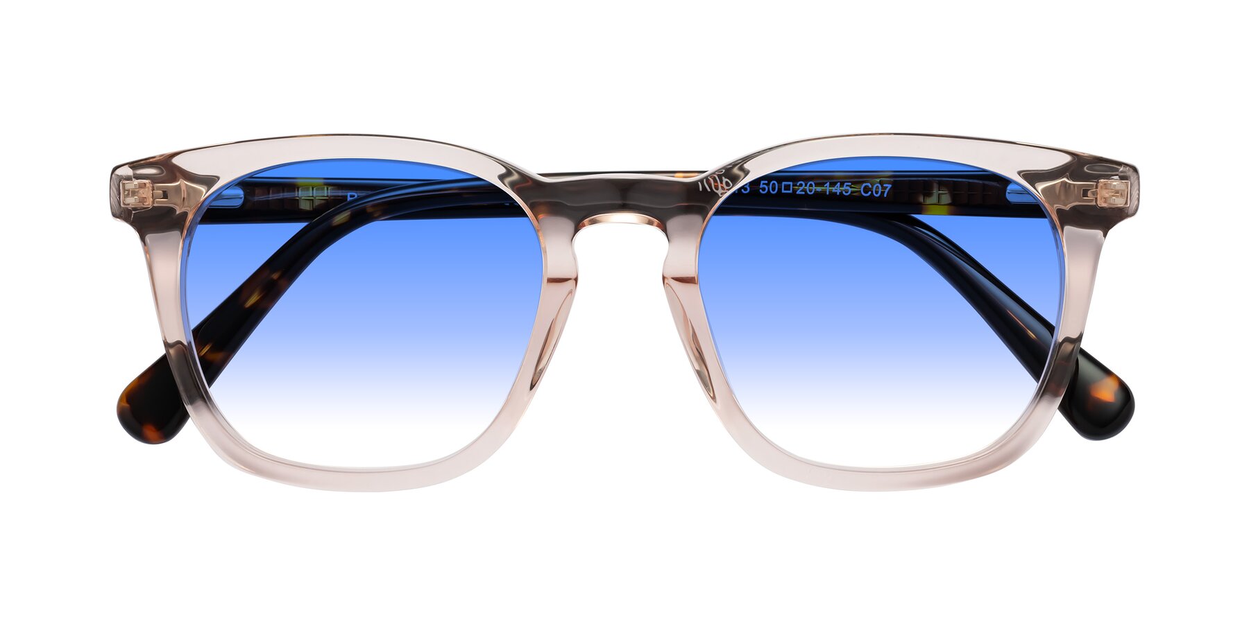 Pink/Tortoise Keyhole Bridge Spring Hinges Trapezoid Gradient Sunglasses with Blue Sunwear Lenses