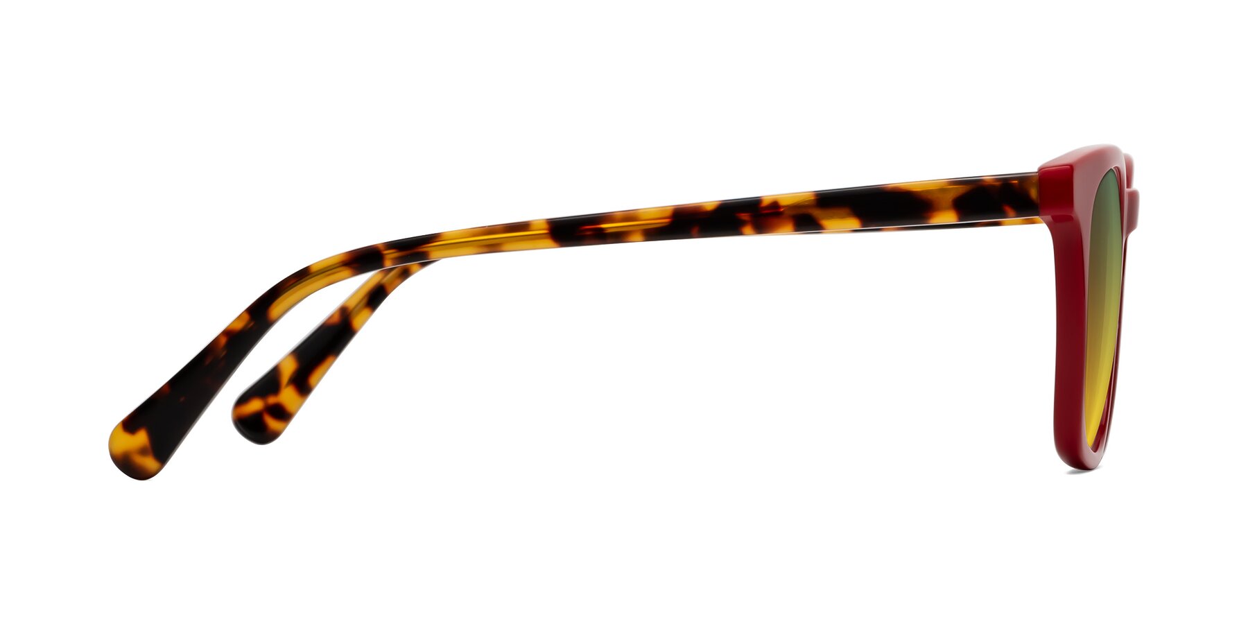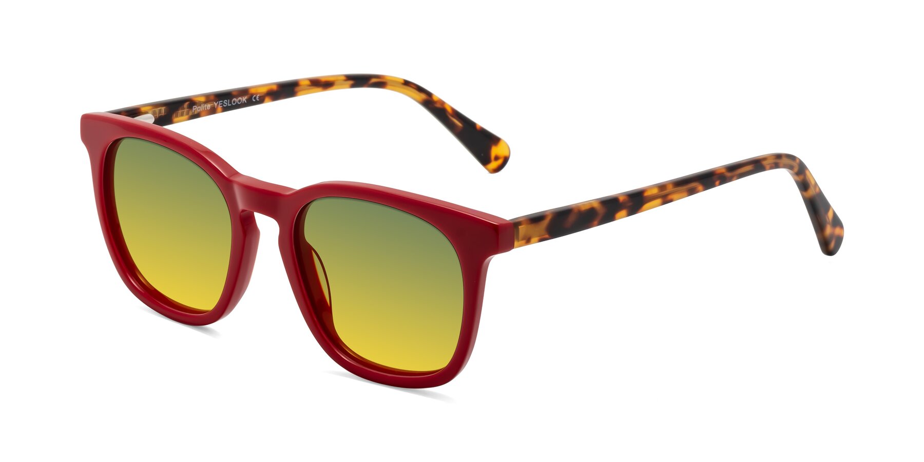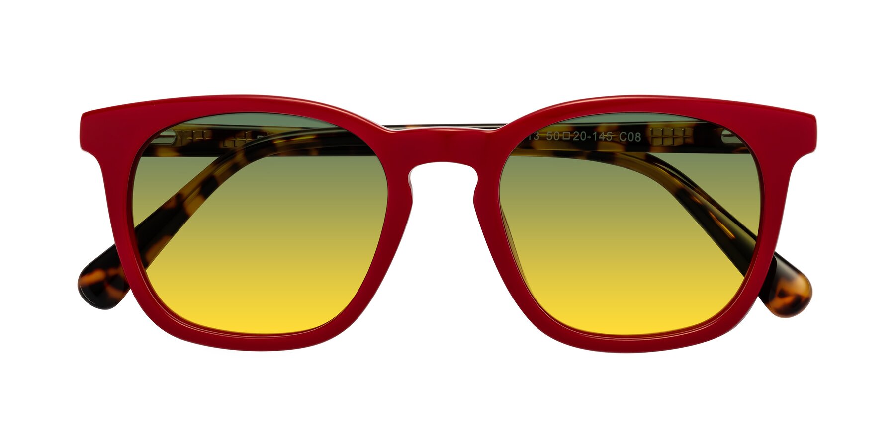 Red/Tortoise Keyhole Bridge Spring Hinges Trapezoid Gradient Sunglasses with Green / Yellow Sunwear Lenses