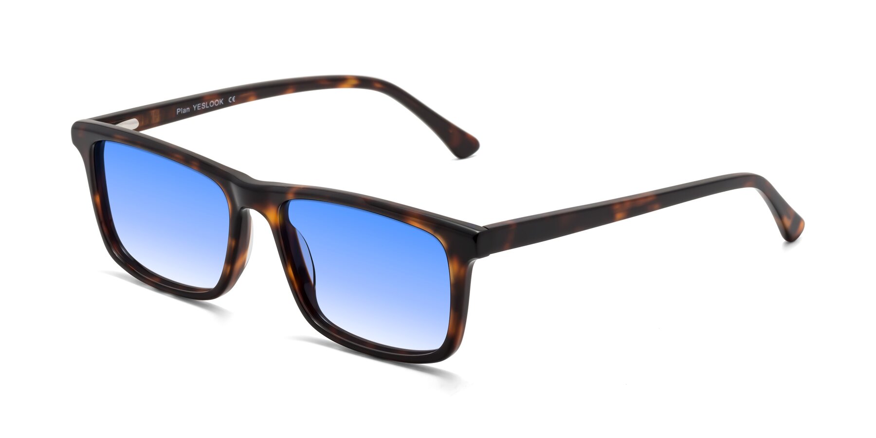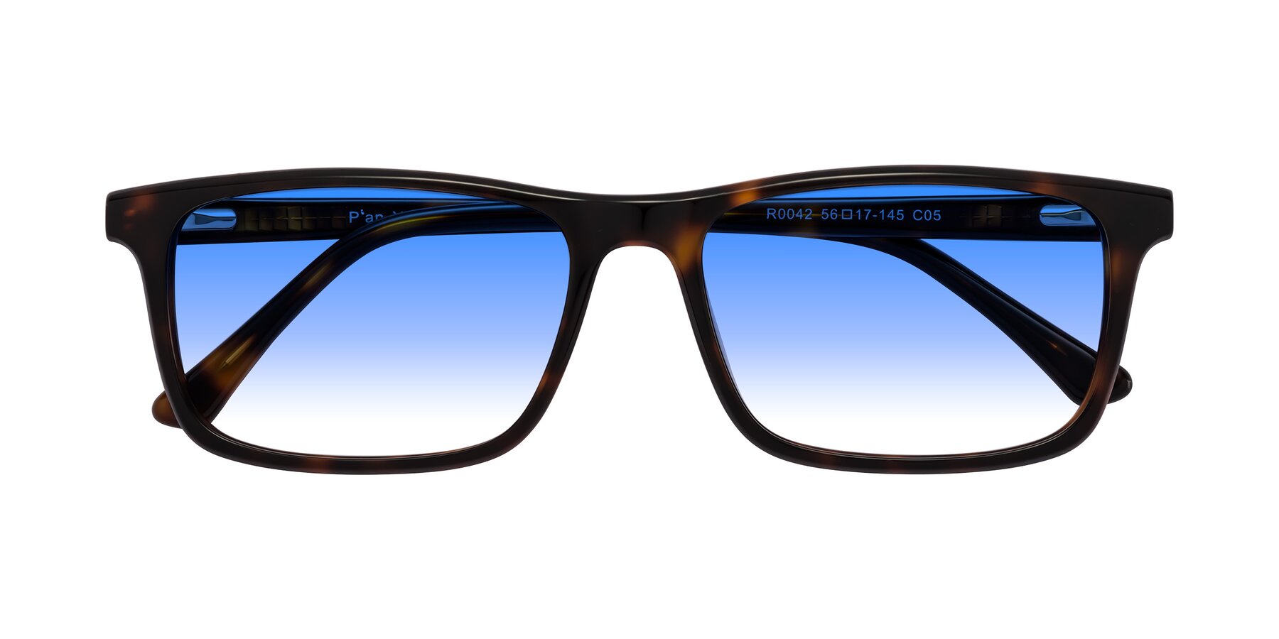 Tortoise Classic Acetate Rectangle Gradient Sunglasses with Blue Sunwear Lenses