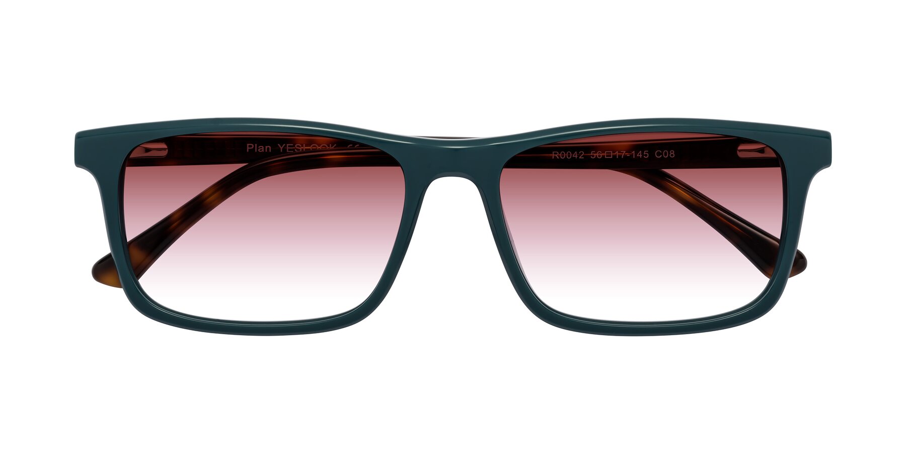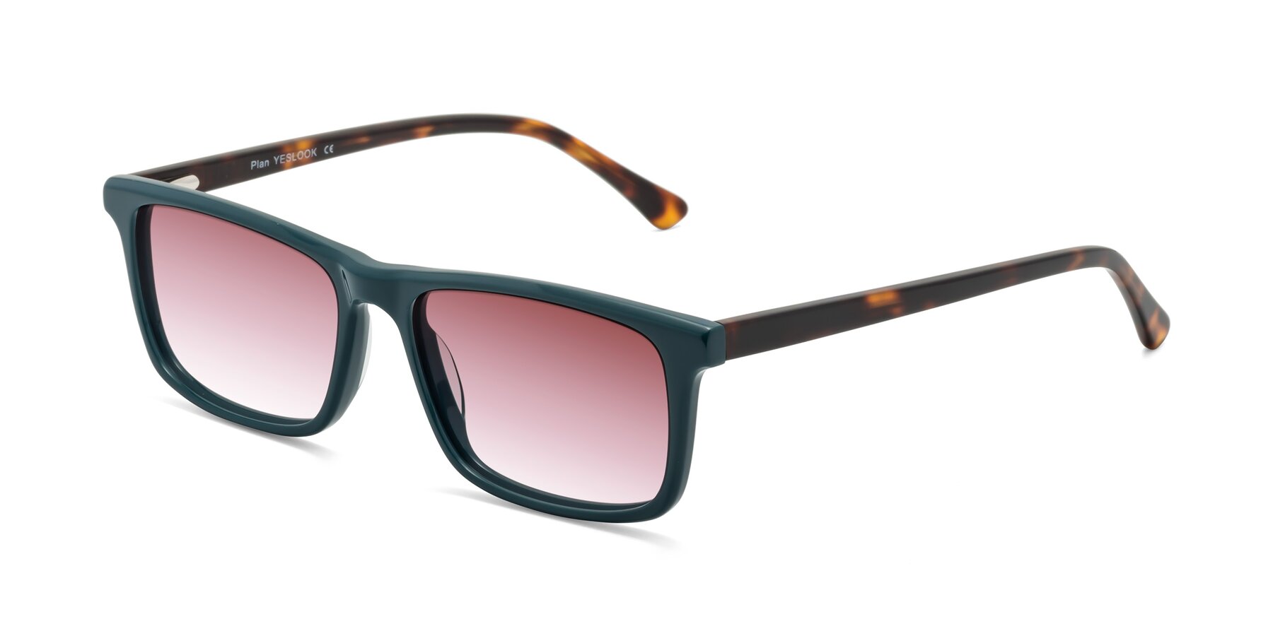 Peacock Blue/Tortoise Classic Acetate Rectangle Gradient Sunglasses with Garnet Sunwear Lenses