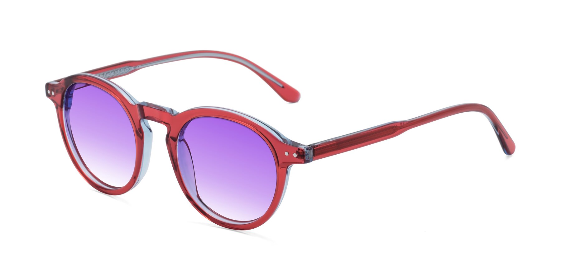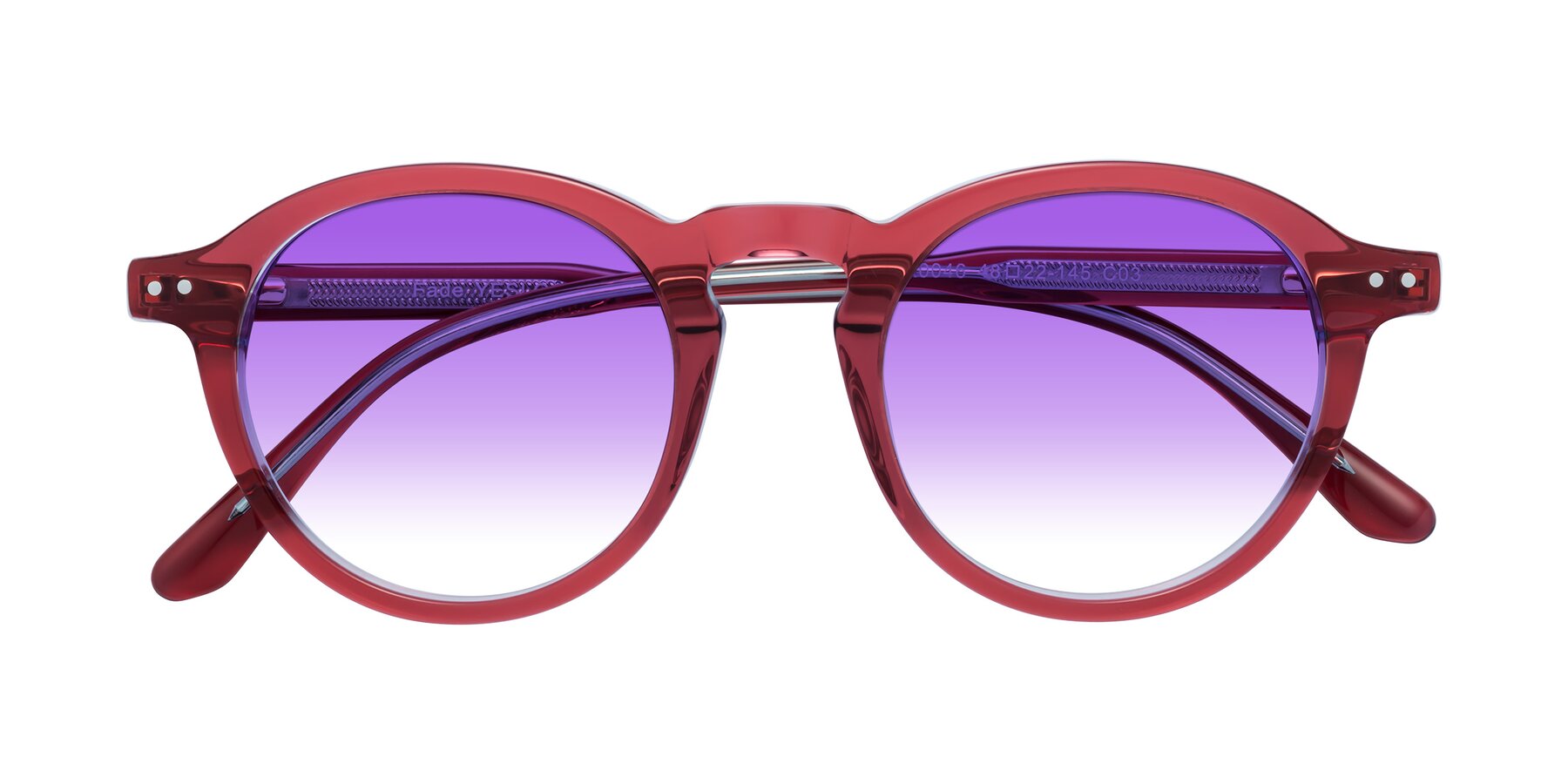 Red Retro-Vintage Keyhole Bridge Round Gradient Sunglasses with Purple Sunwear Lenses