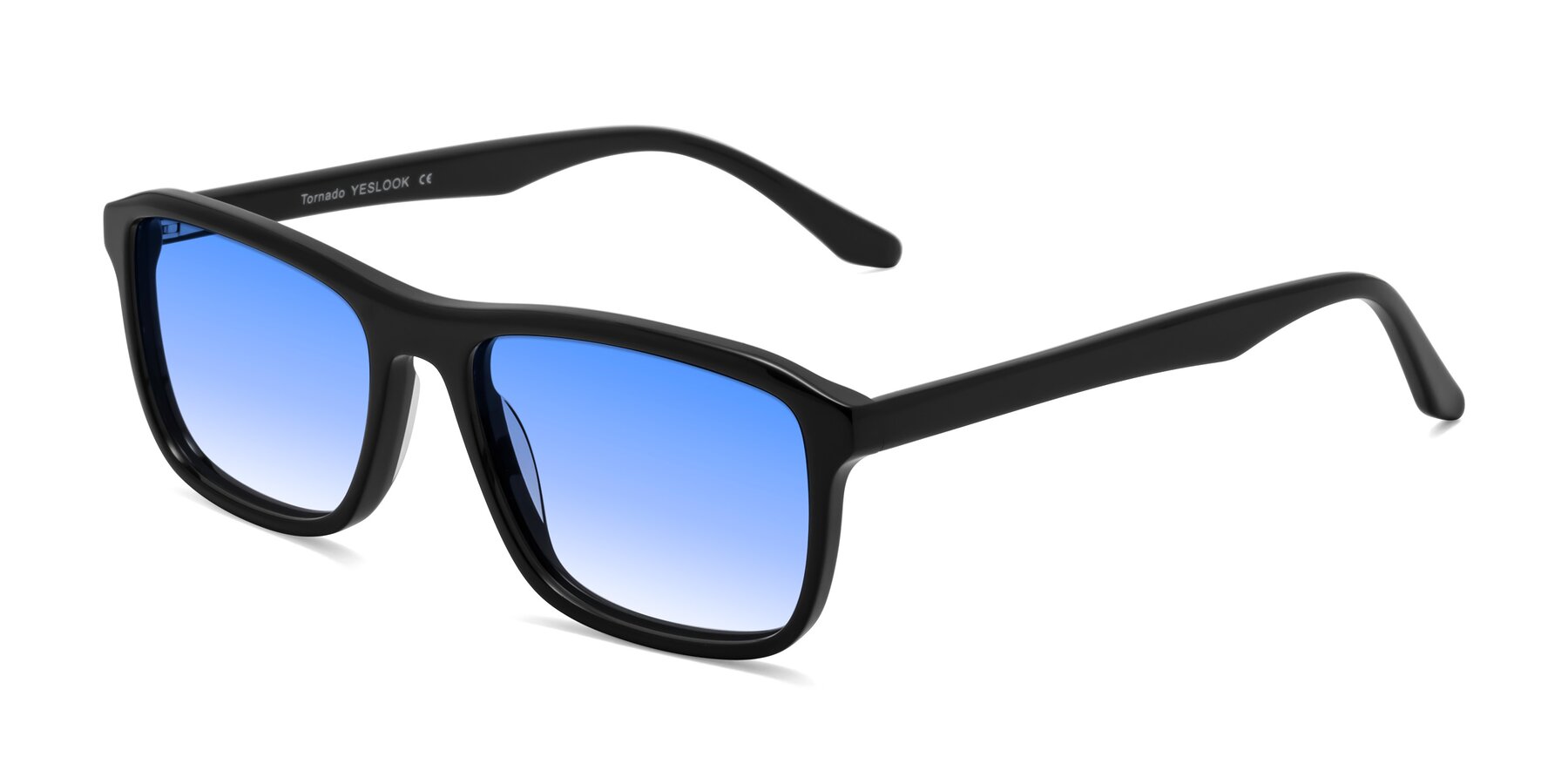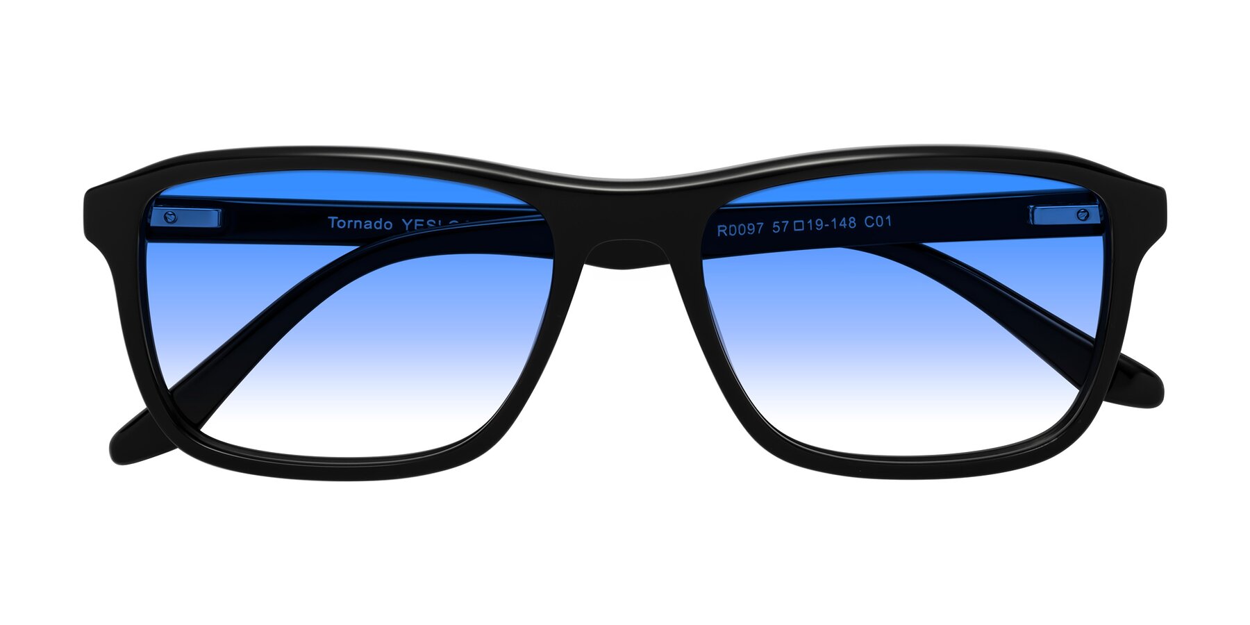 Black Classic Acetate Rectangle Gradient Sunglasses with Blue Sunwear Lenses