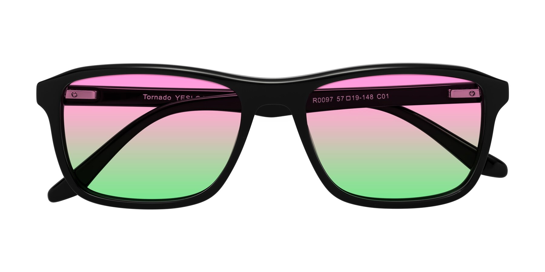 Black Classic Acetate Rectangle Gradient Sunglasses with Pink / Green Sunwear Lenses
