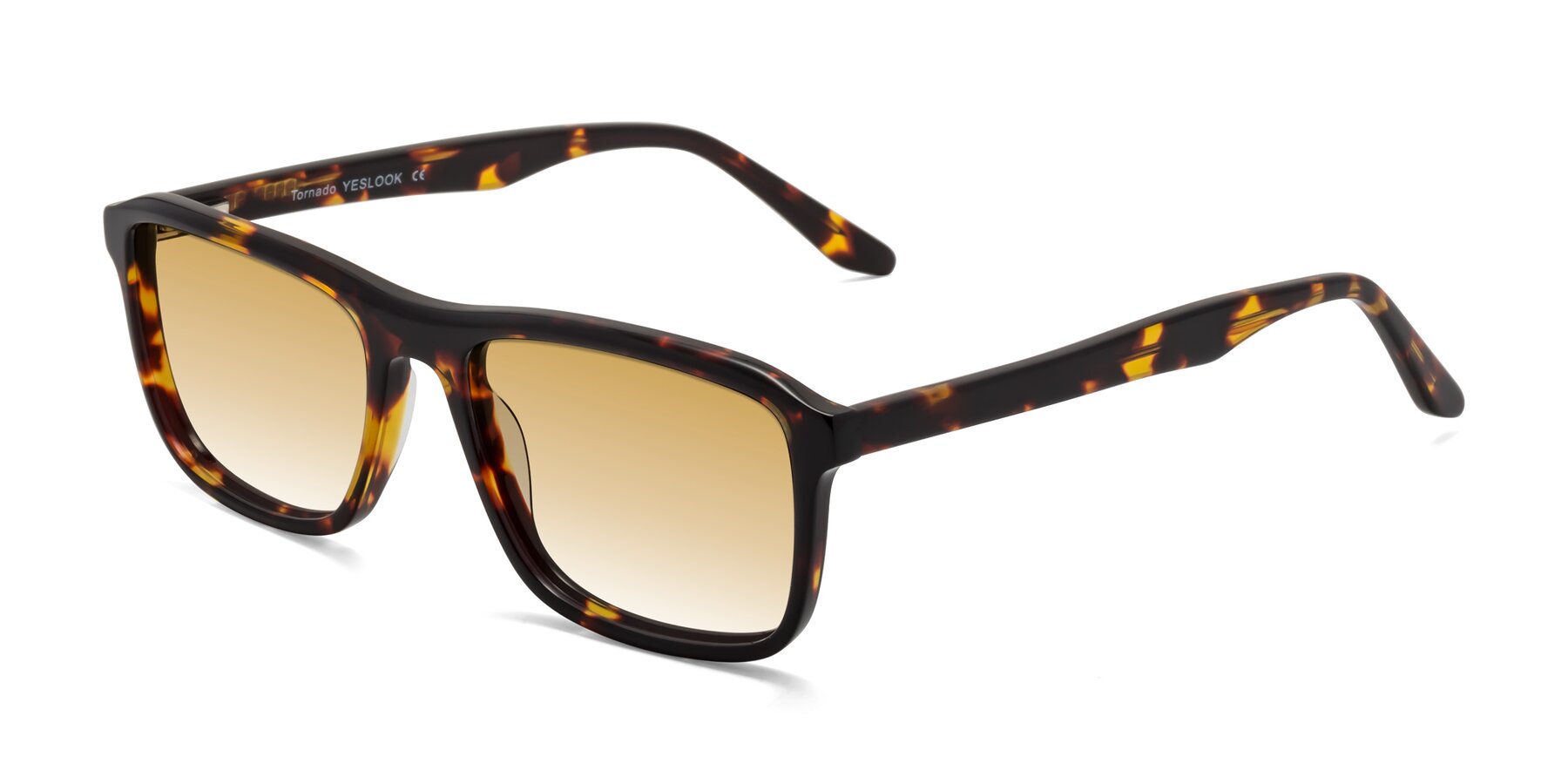 Tortoise Classic Acetate Rectangle Gradient Sunglasses with Champagne Sunwear Lenses
