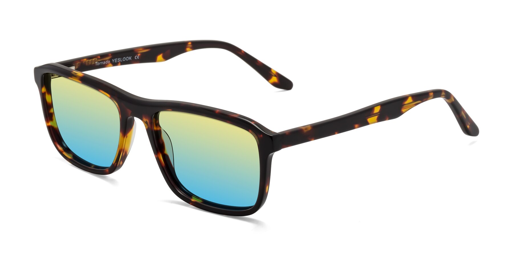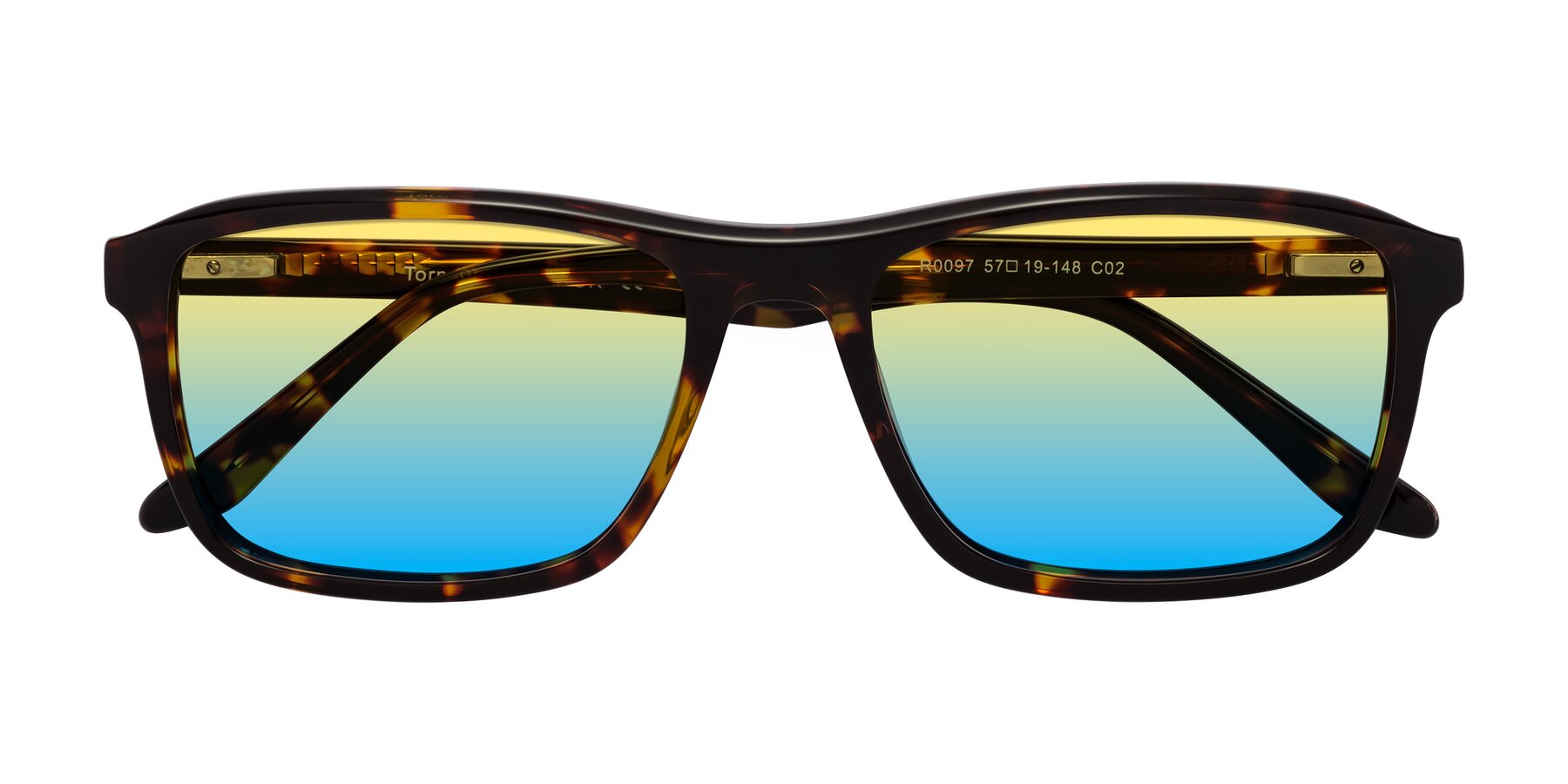 Tortoise Classic Acetate Rectangle Gradient Sunglasses with Yellow / Blue Sunwear Lenses