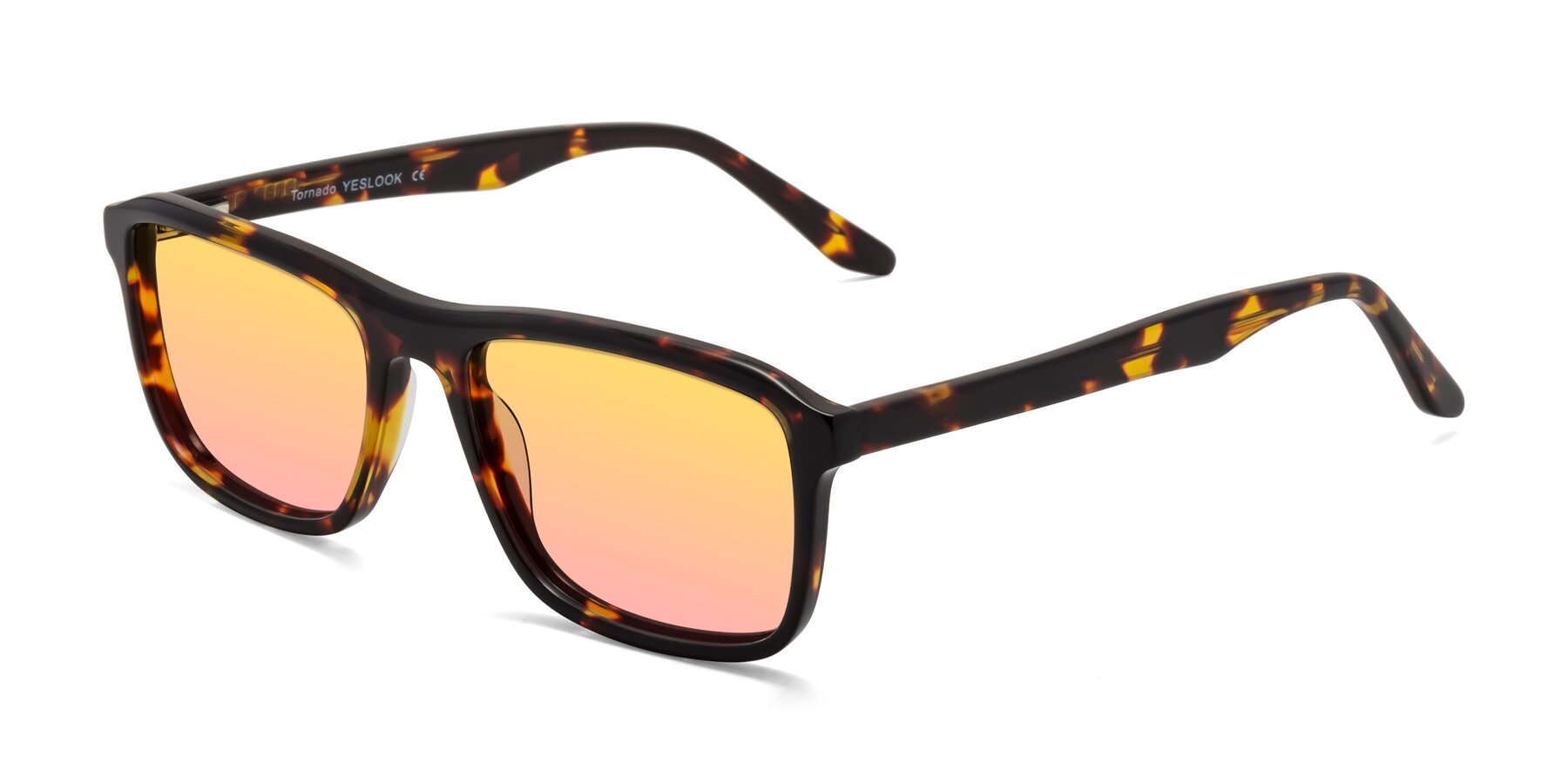 Tortoise Classic Acetate Rectangle Gradient Sunglasses with Yellow / Pink Sunwear Lenses