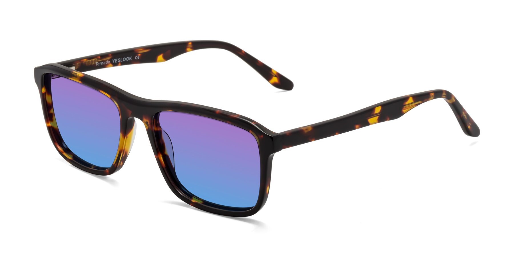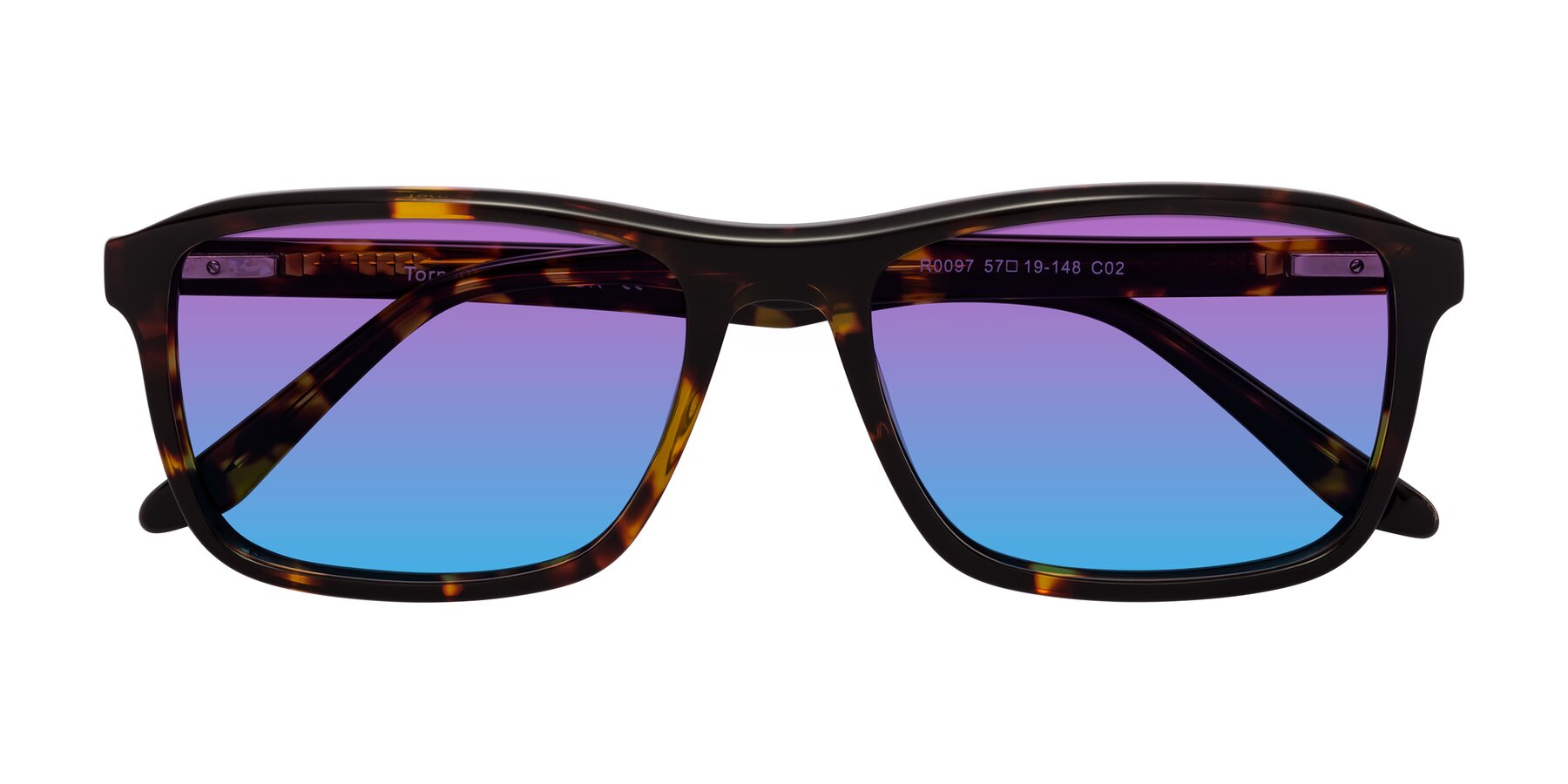 Tortoise Classic Acetate Rectangle Gradient Sunglasses with Purple / Blue Sunwear Lenses