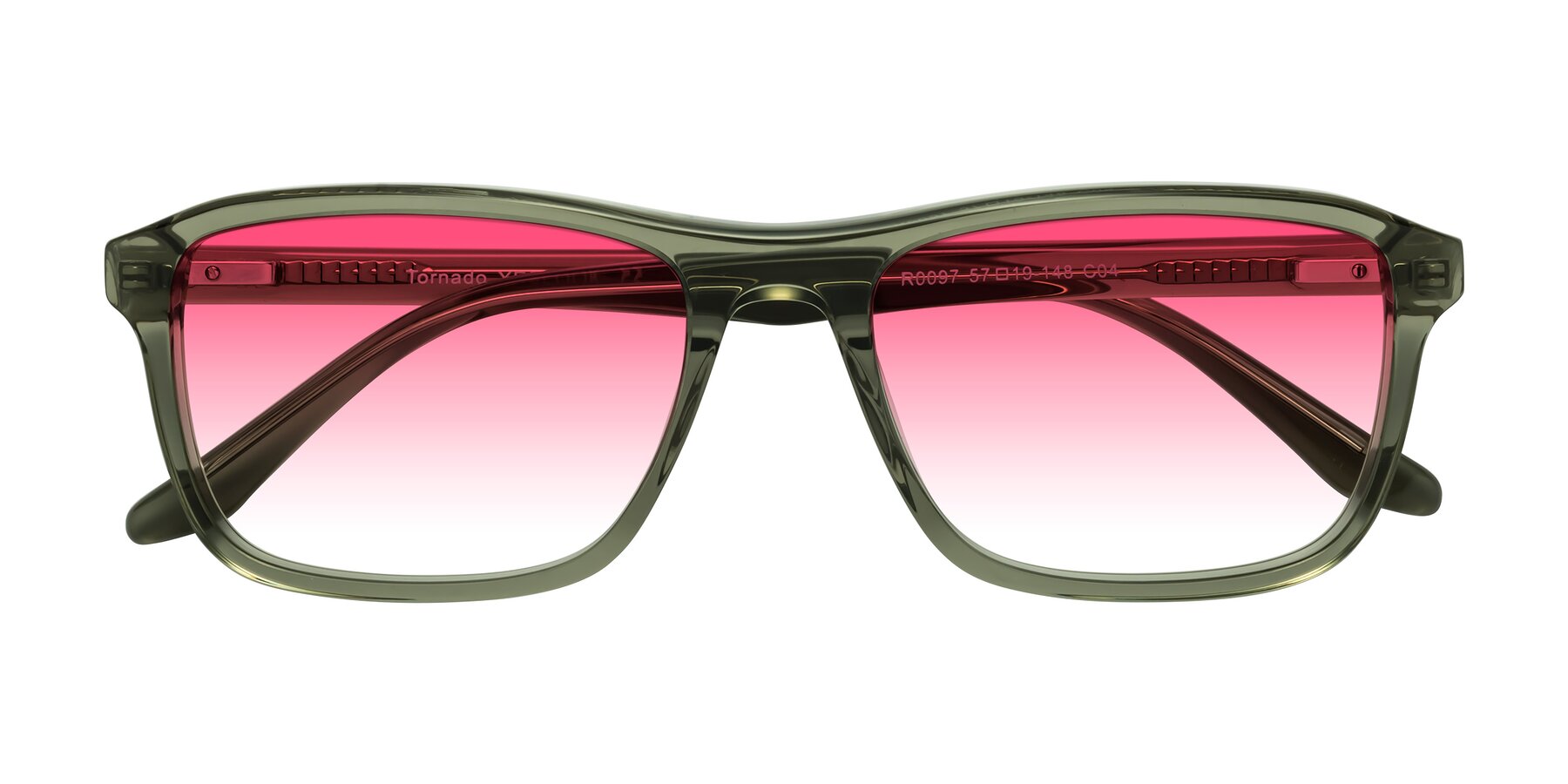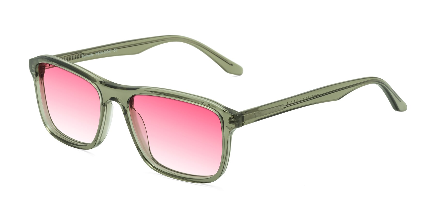 Grayish Green Classic Acetate Rectangle Gradient Sunglasses with Pink Sunwear Lenses