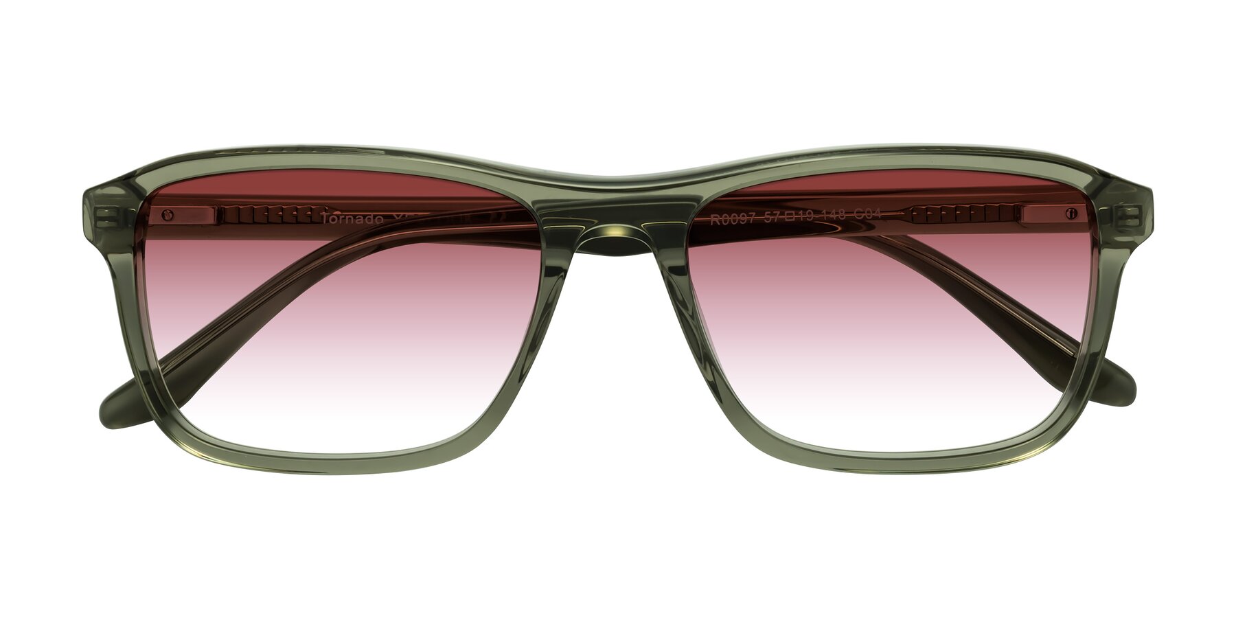 Grayish Green Classic Acetate Rectangle Gradient Sunglasses with Garnet Sunwear Lenses