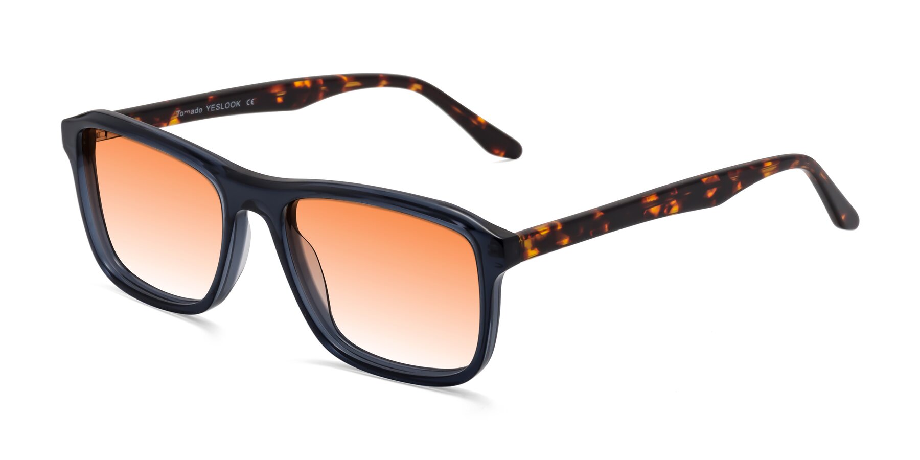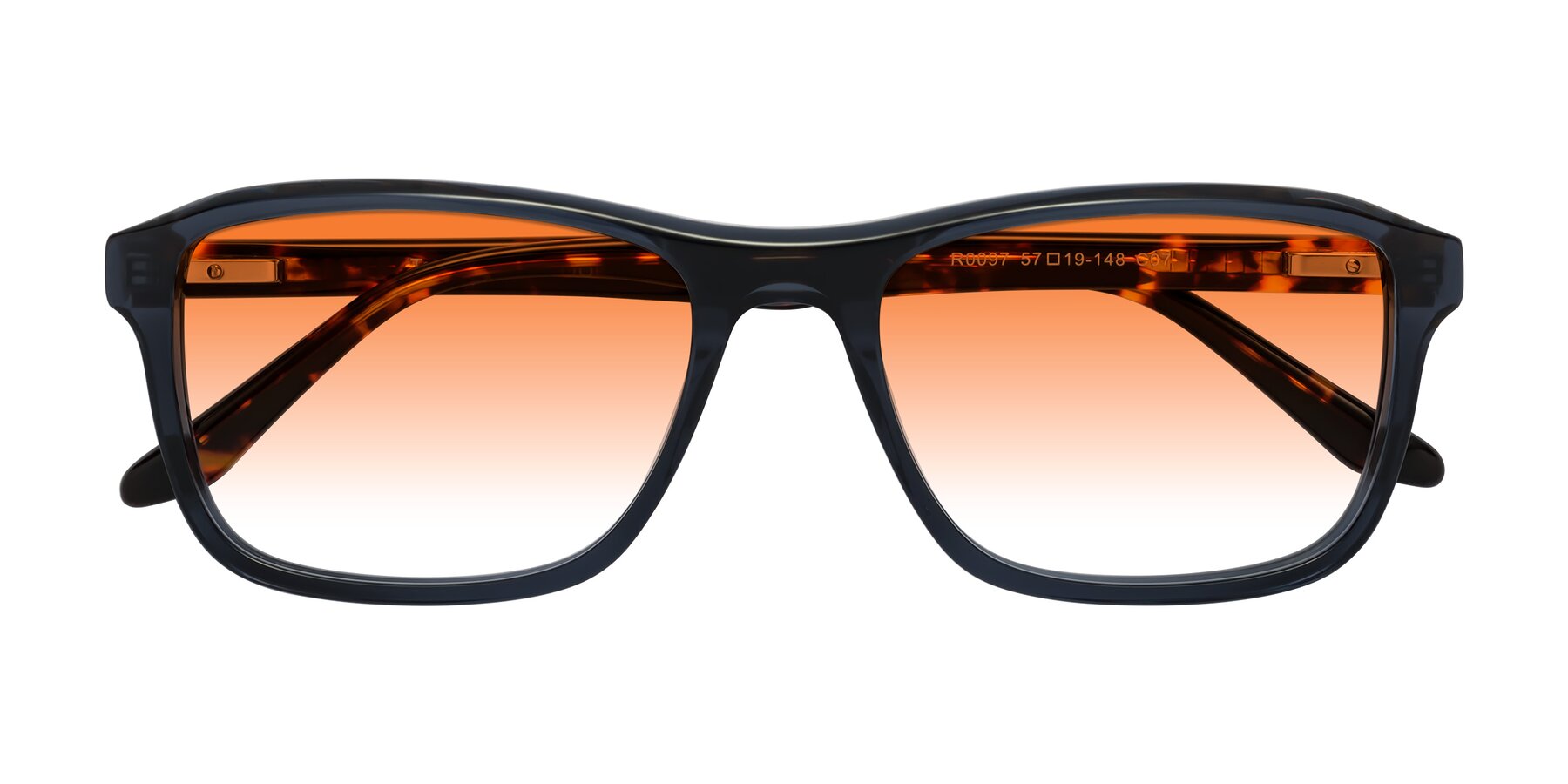 Grayish Blue/Tortoise Classic Acetate Rectangle Gradient Sunglasses with Orange Sunwear Lenses