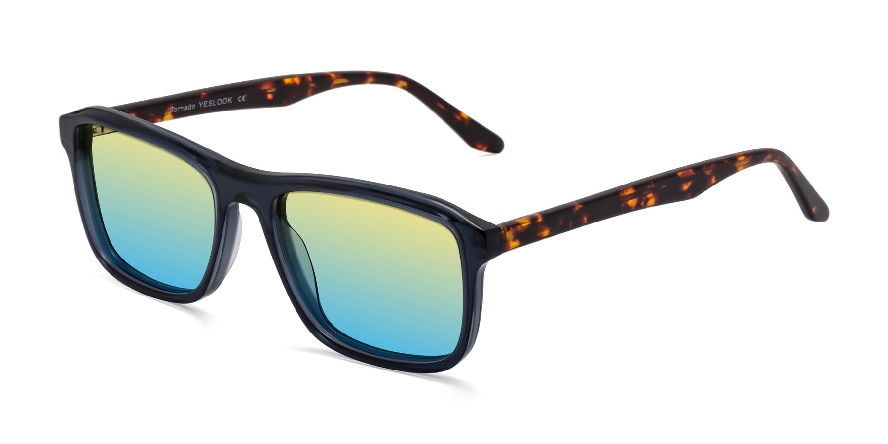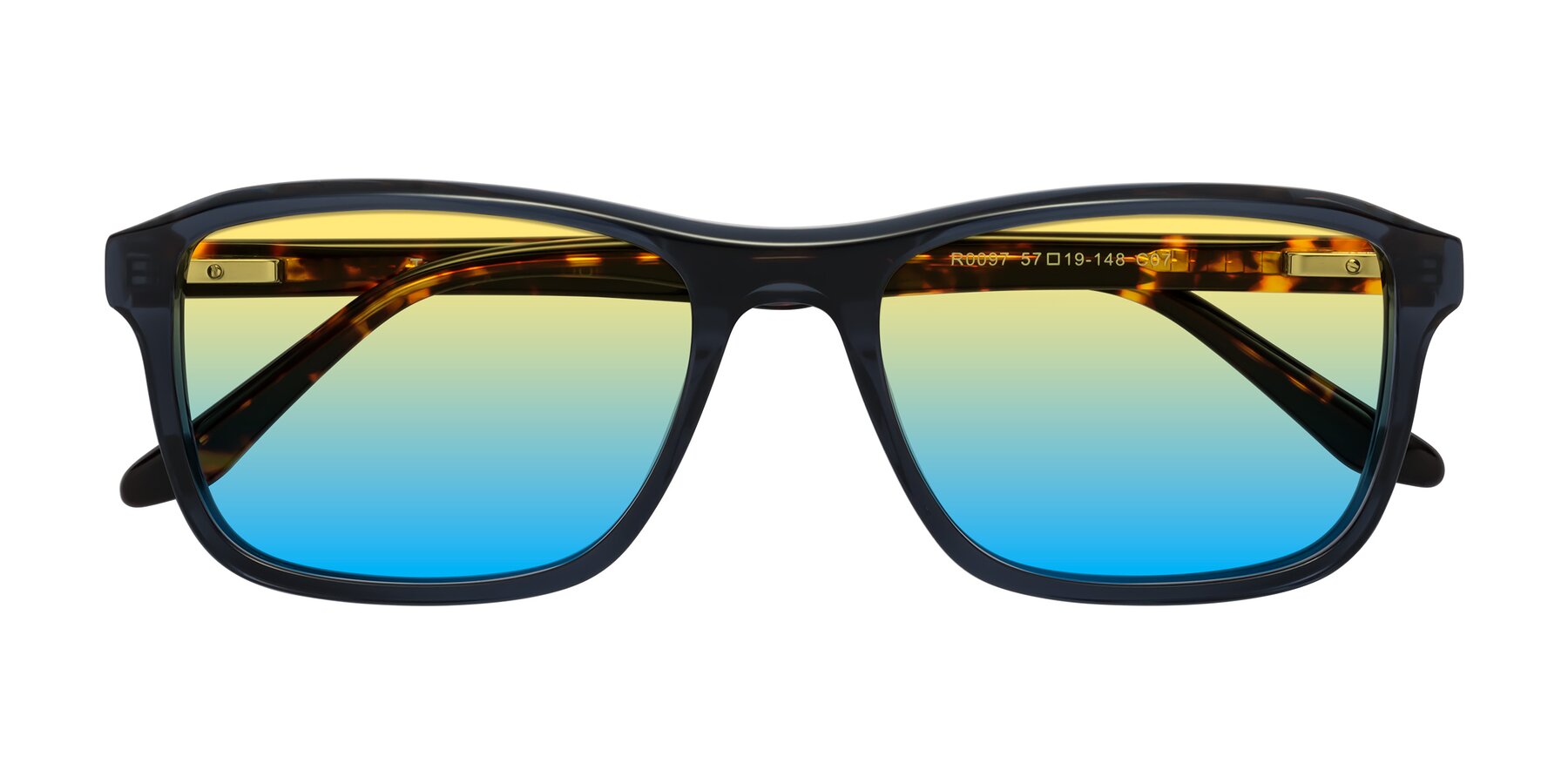 Grayish Blue/Tortoise Classic Acetate Rectangle Gradient Sunglasses with Yellow / Blue Sunwear Lenses
