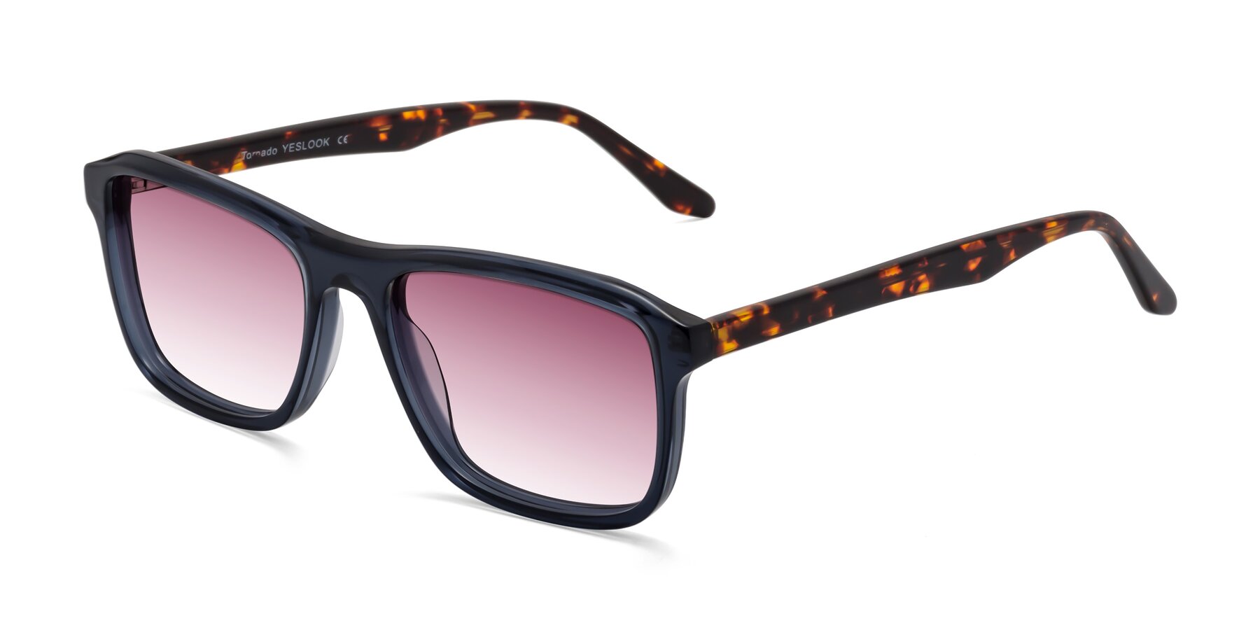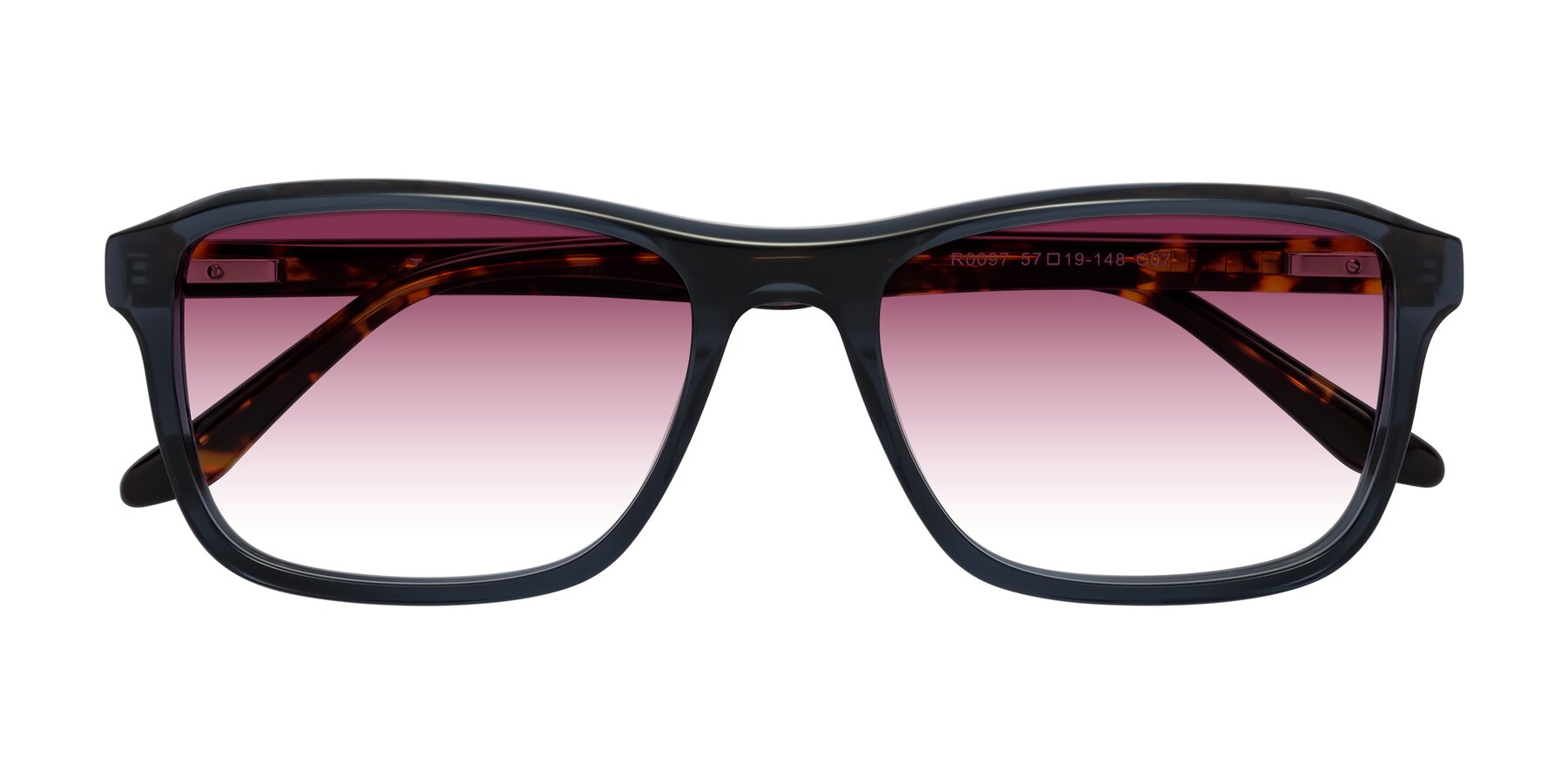 Grayish Blue/Tortoise Classic Acetate Rectangle Gradient Sunglasses with Wine Sunwear Lenses