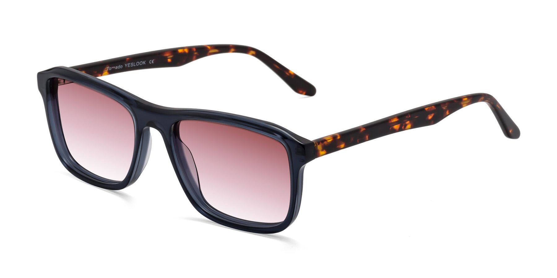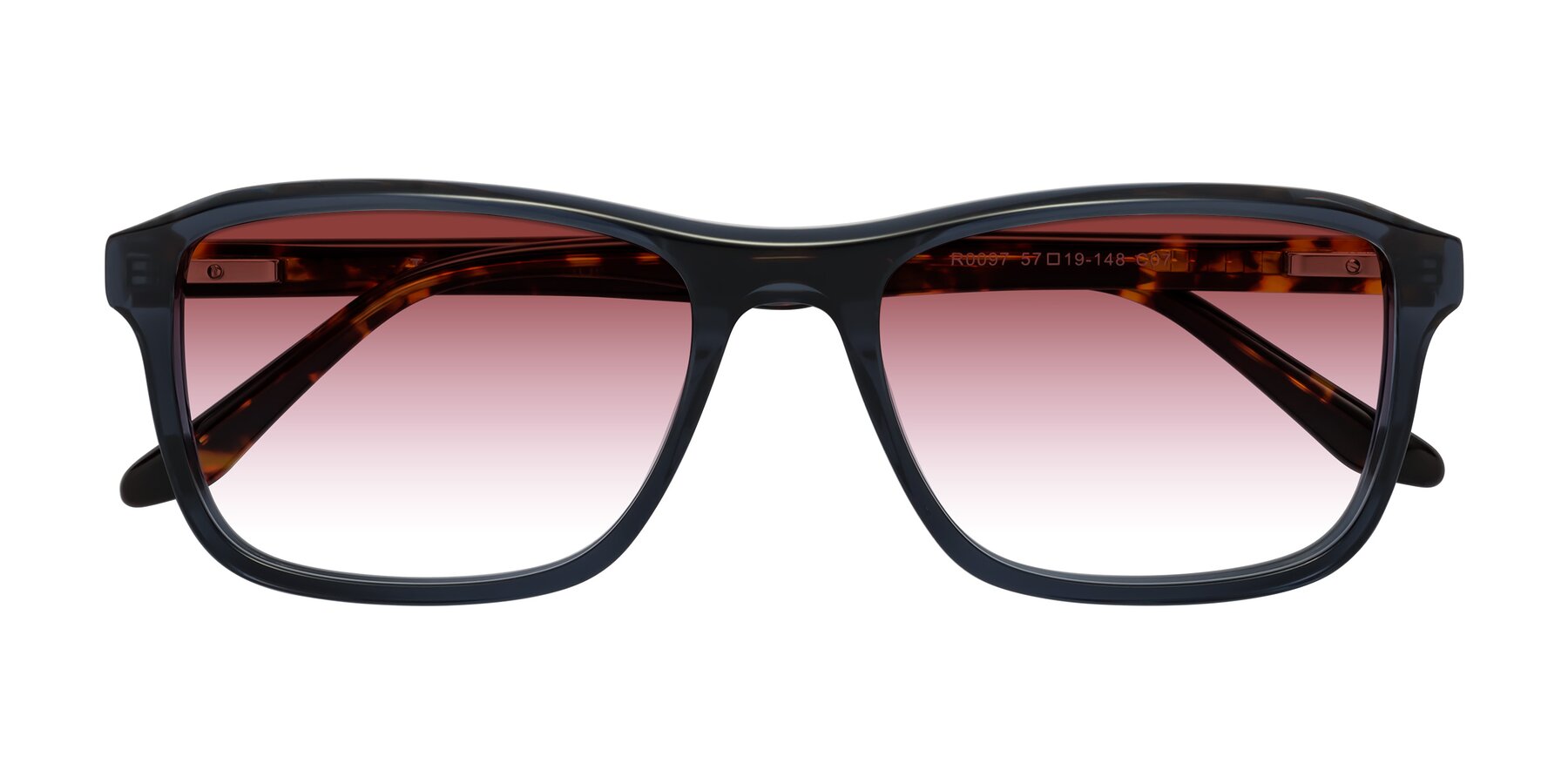 Grayish Blue/Tortoise Classic Acetate Rectangle Gradient Sunglasses with Garnet Sunwear Lenses