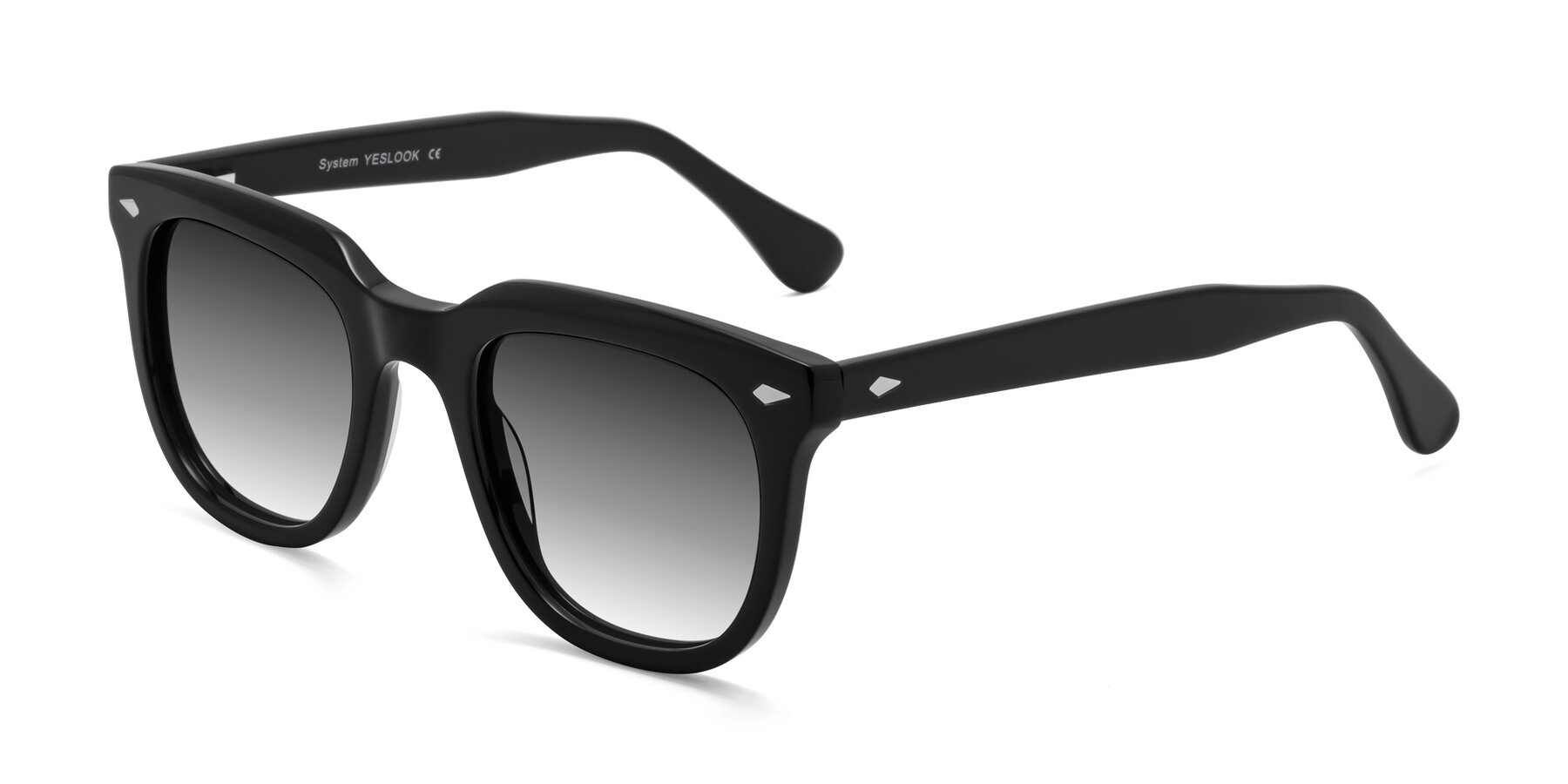 Black Thick Acetate Square Gradient Sunglasses with Gray Sunwear Lenses