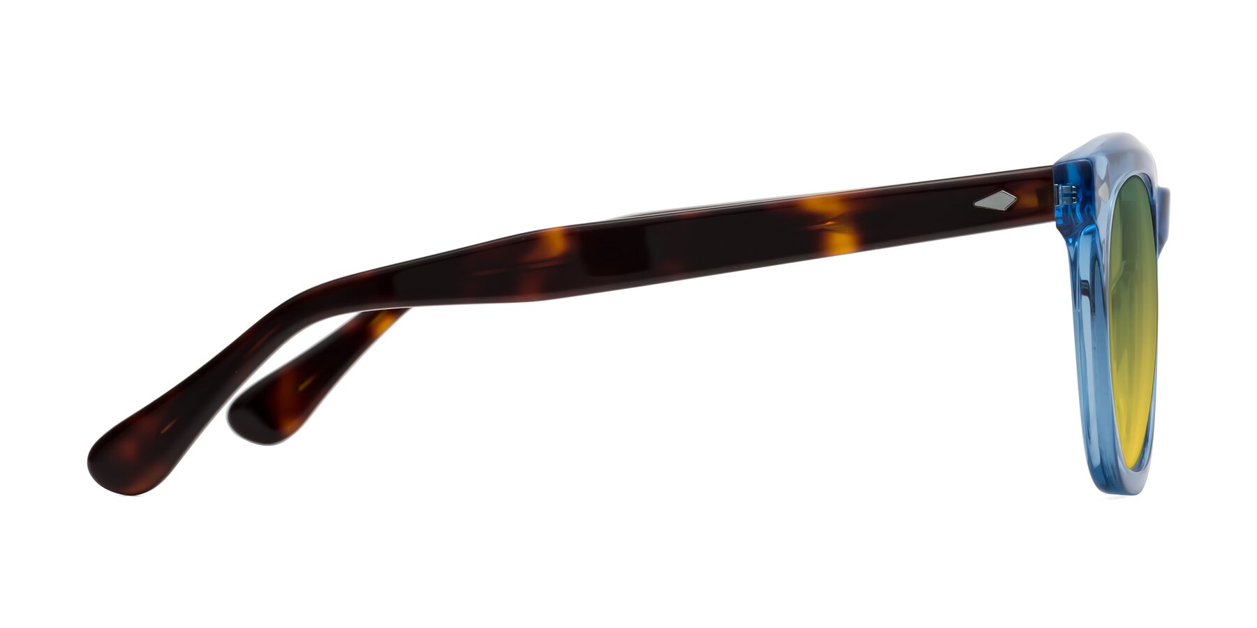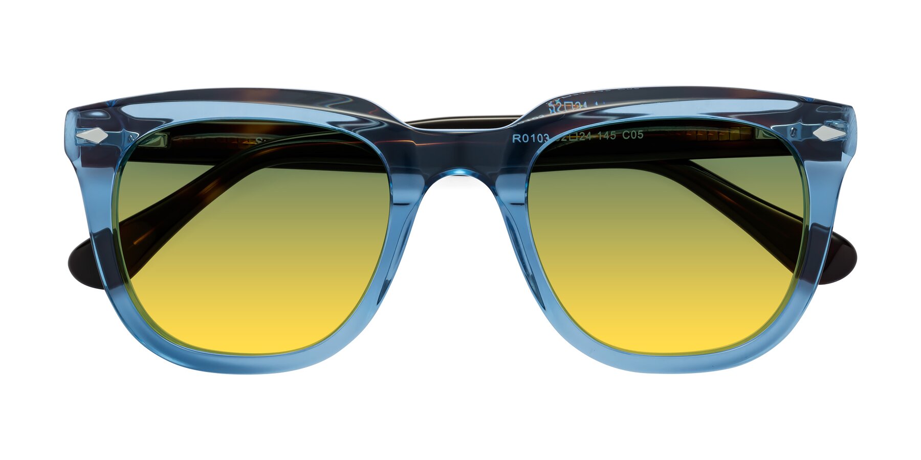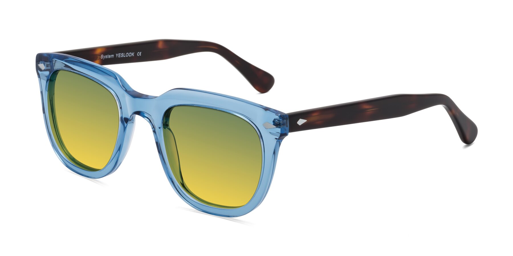 Light Blue/Tortoise Thick Acetate Square Gradient Sunglasses with Green / Yellow Sunwear Lenses