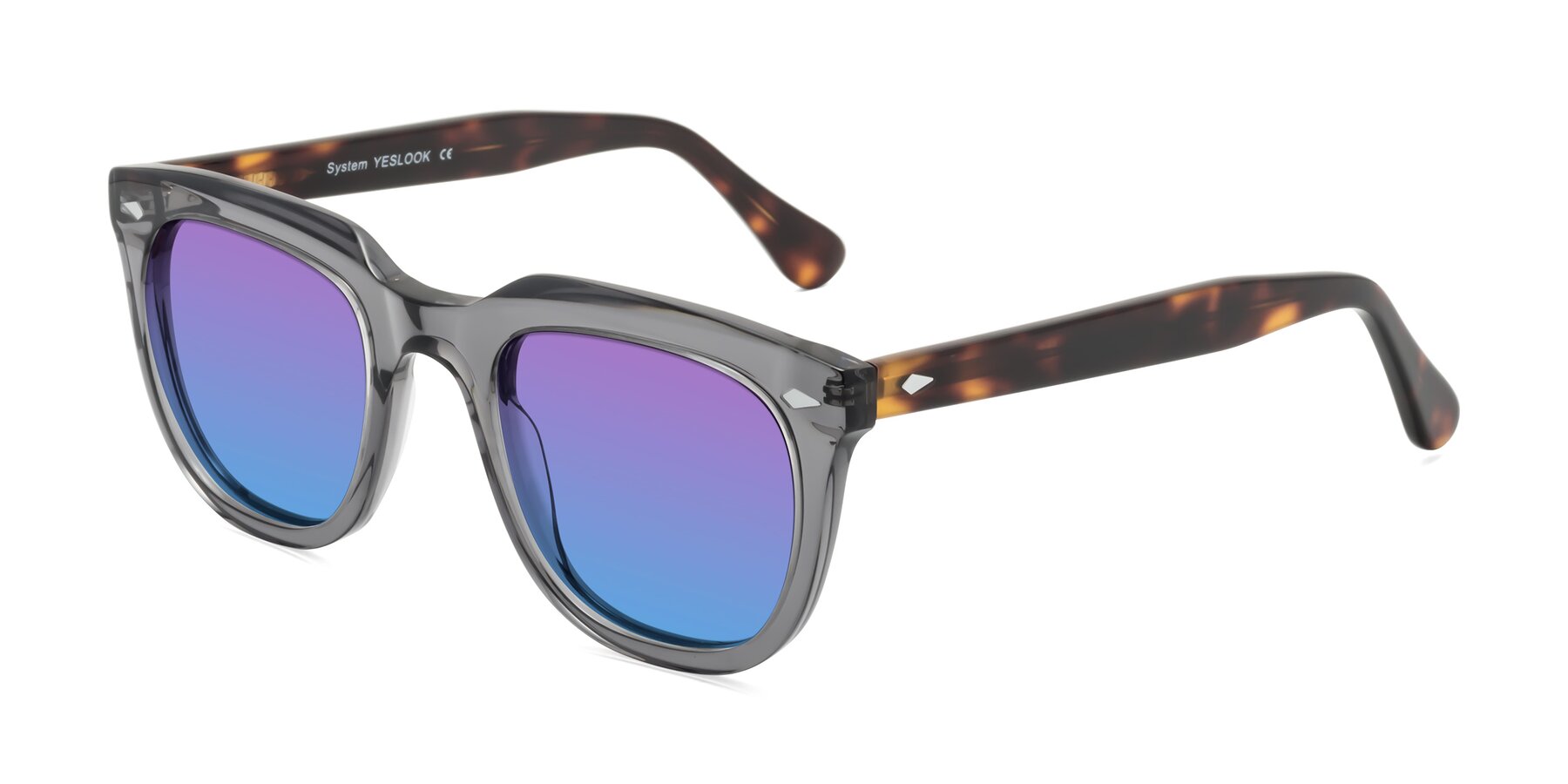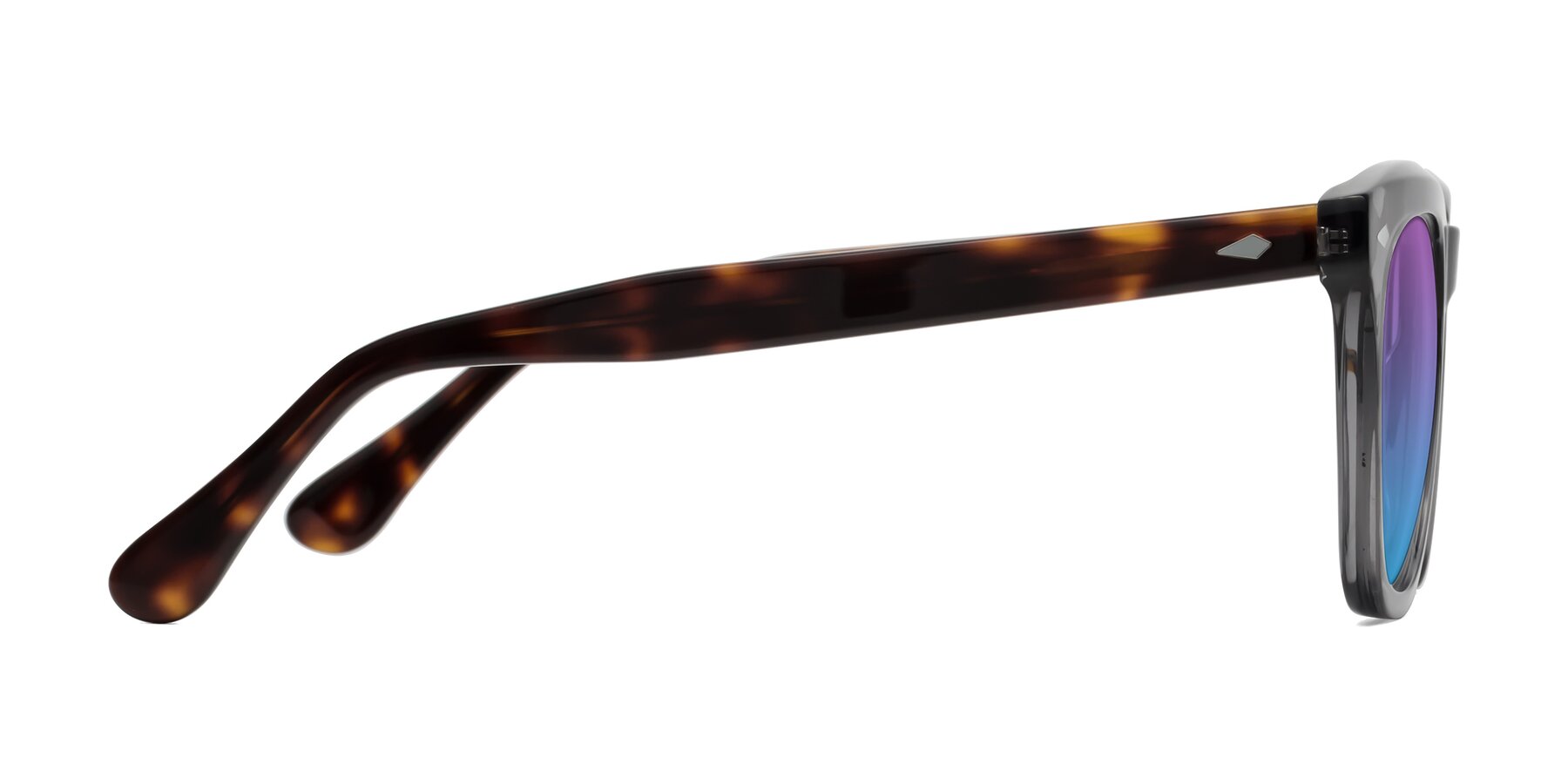 Light Gray/Tortoise Thick Acetate Square Gradient Sunglasses with Purple / Blue Sunwear Lenses