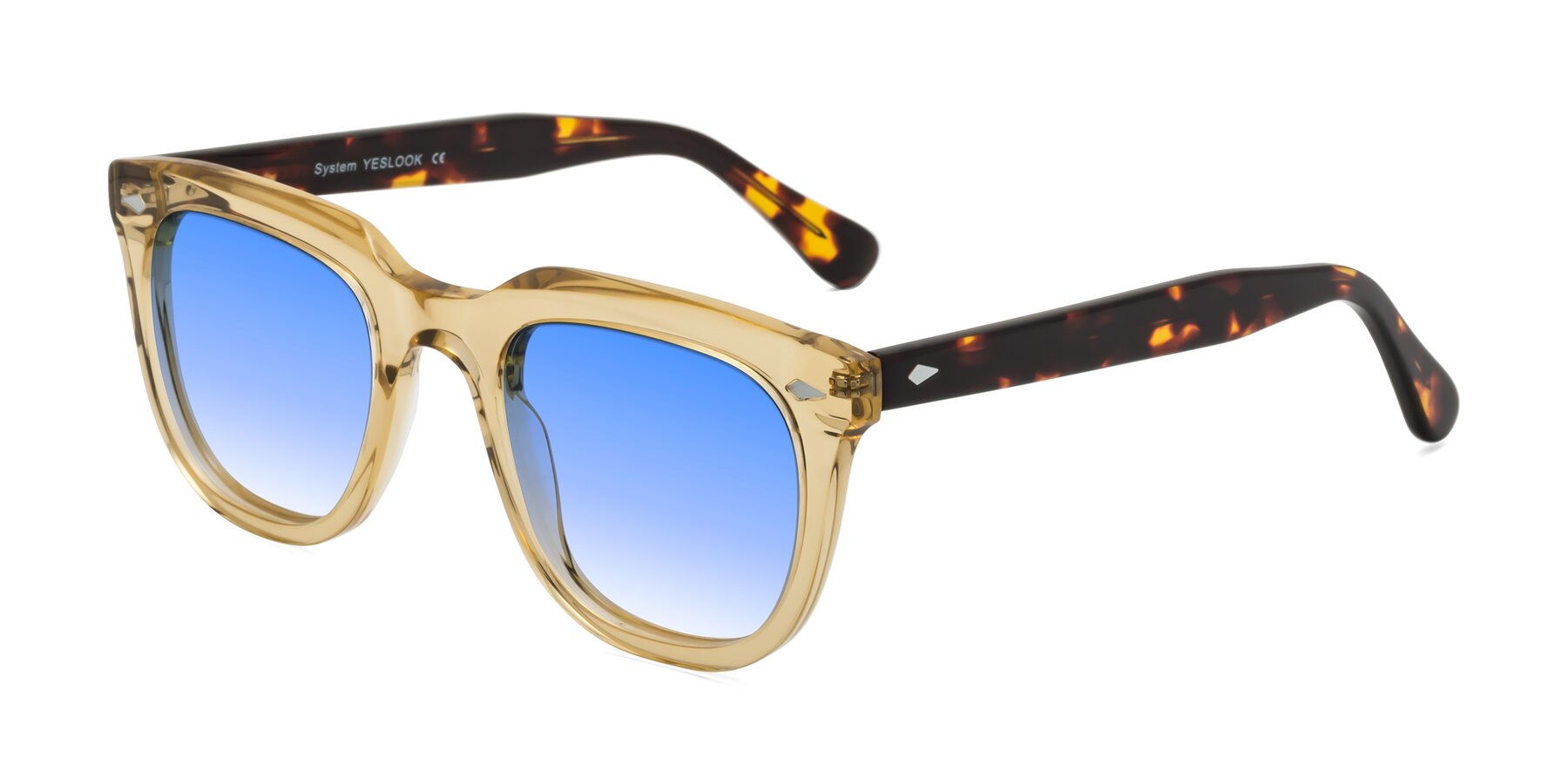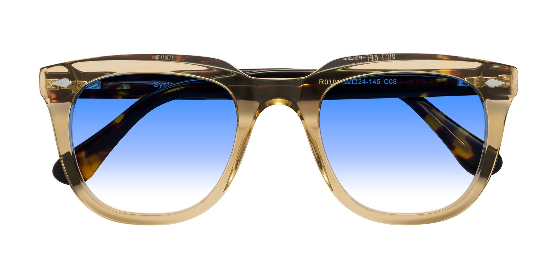Champagne/Tortoise Thick Acetate Square Gradient Sunglasses with Blue Sunwear Lenses
