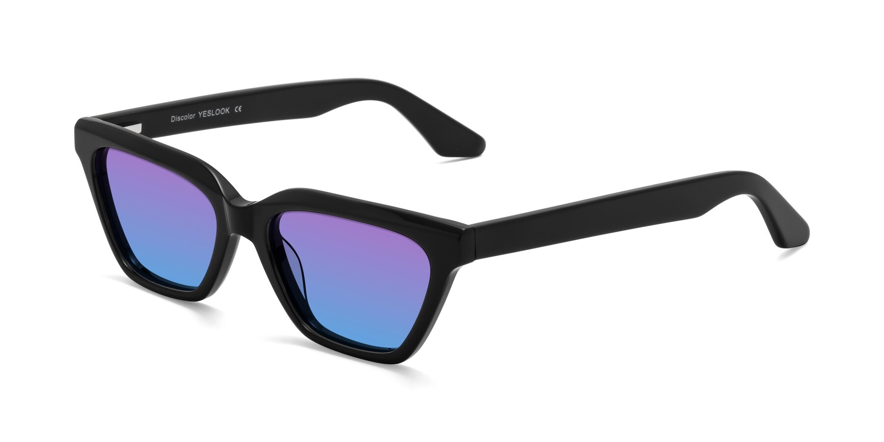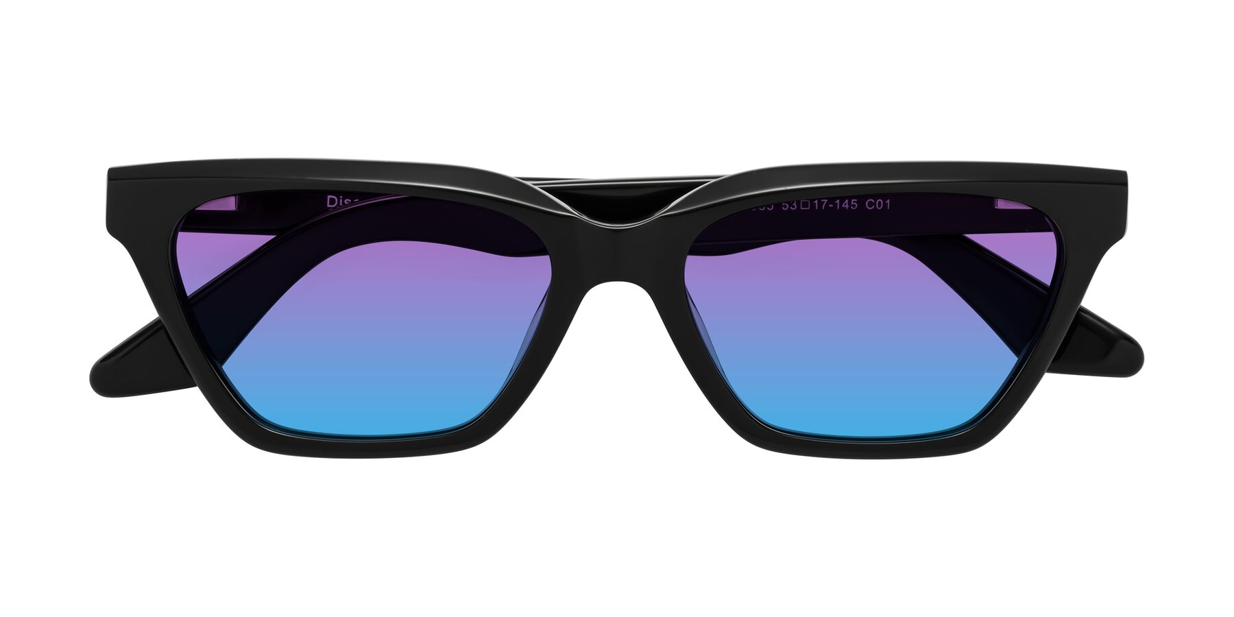 Black Geek-Chic Acetate Geometric Gradient Sunglasses with Purple / Blue Sunwear Lenses