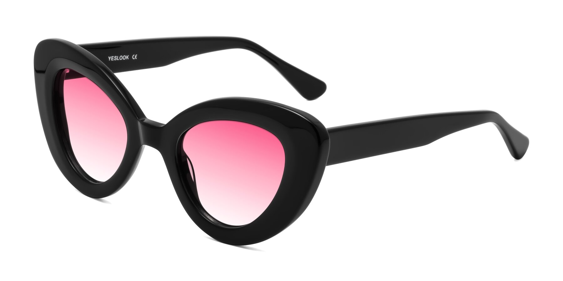 Black Thick Acetate Cat-Eye Gradient Sunglasses with Pink Sunwear Lenses
