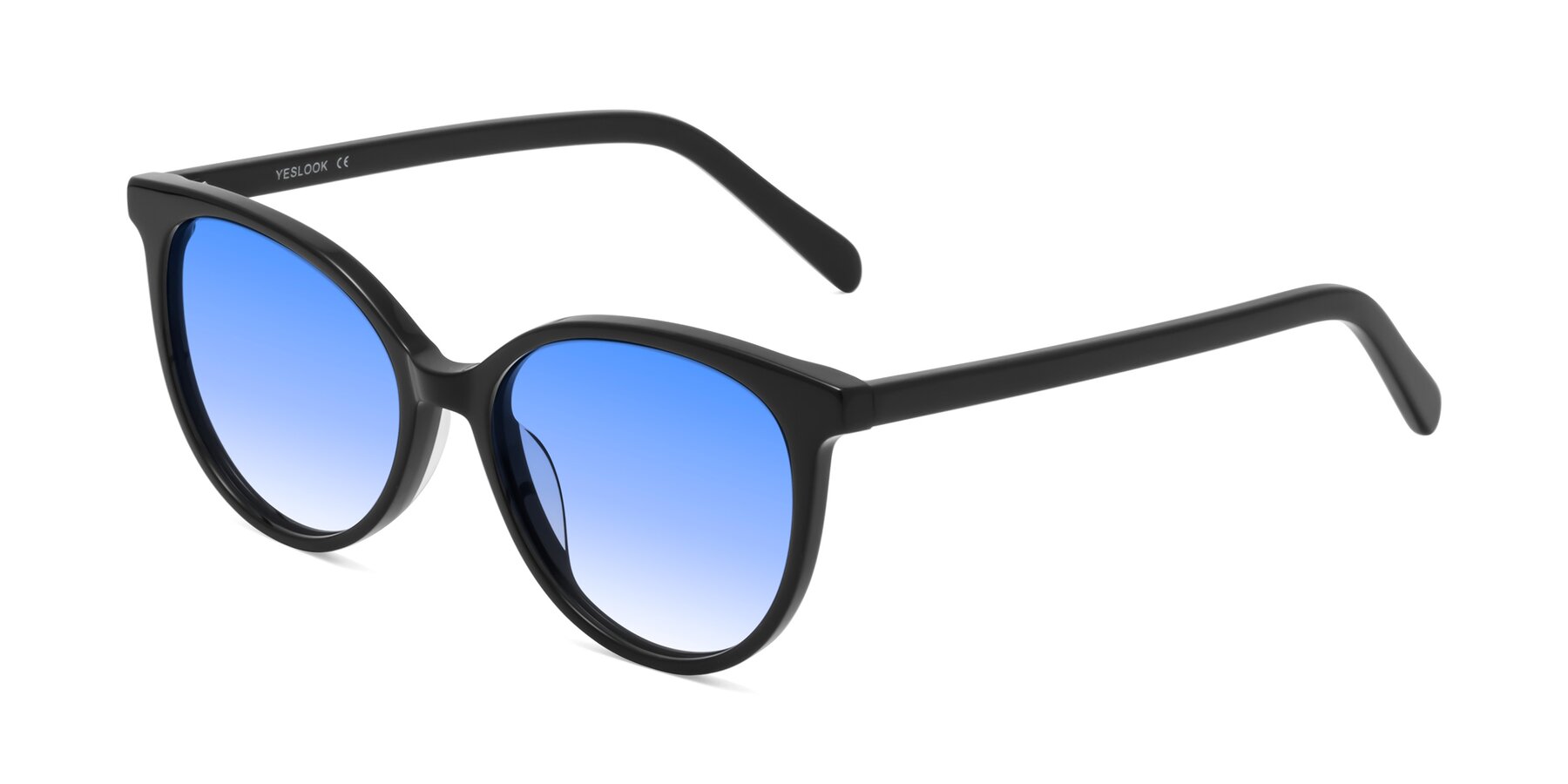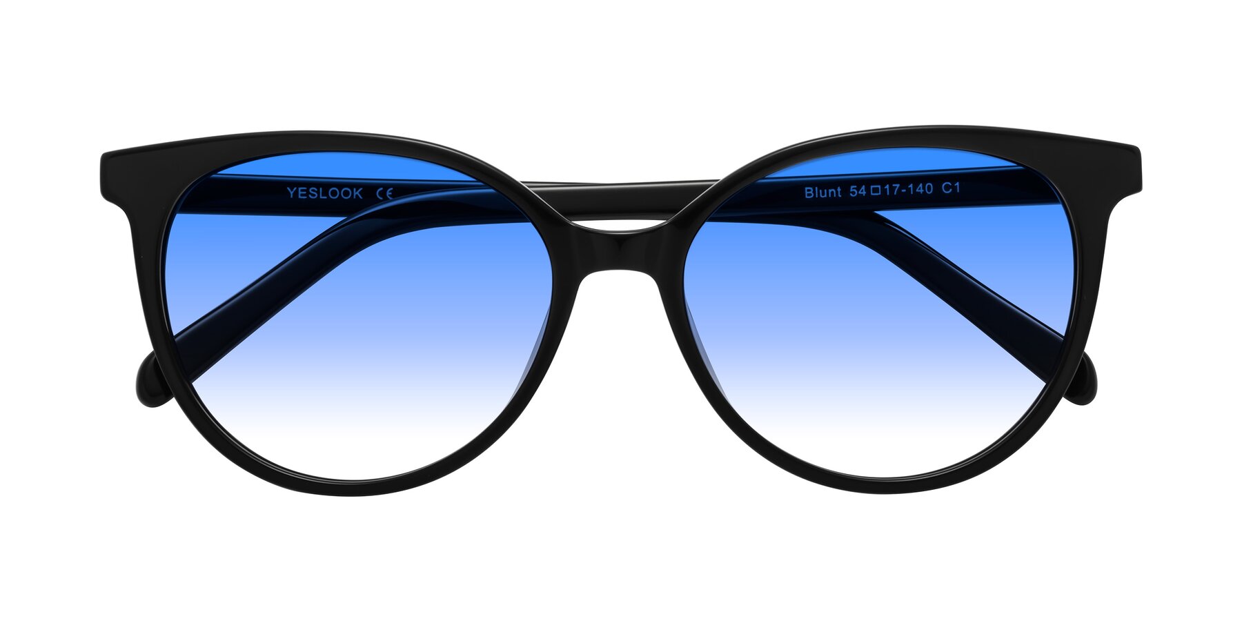 Black Low Bridge Fit Acetate Cat-Eye Gradient Sunglasses with Blue Sunwear Lenses