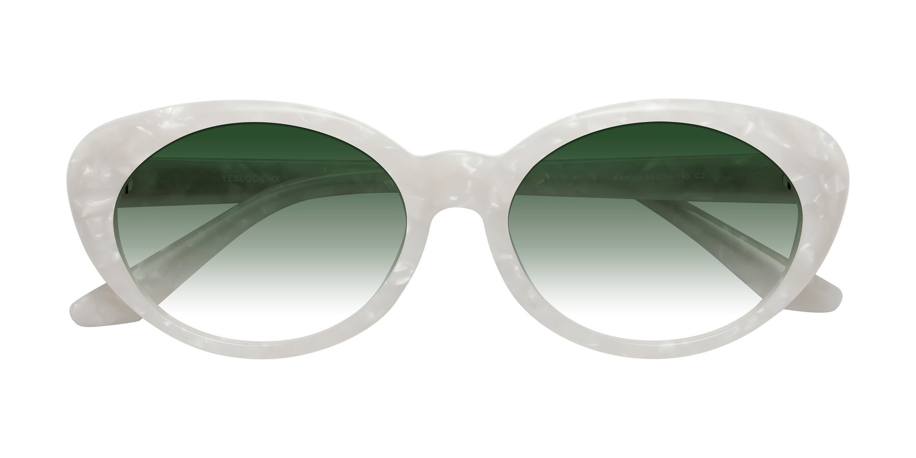 Mother-of-pearl Retro-Vintage Acetate Oval Gradient Sunglasses with Green Sunwear Lenses