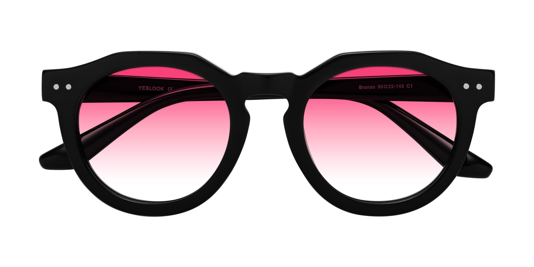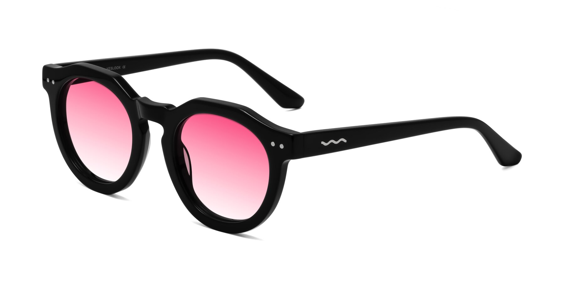 Black Acetate Round Geometric Gradient Sunglasses with Pink Sunwear Lenses