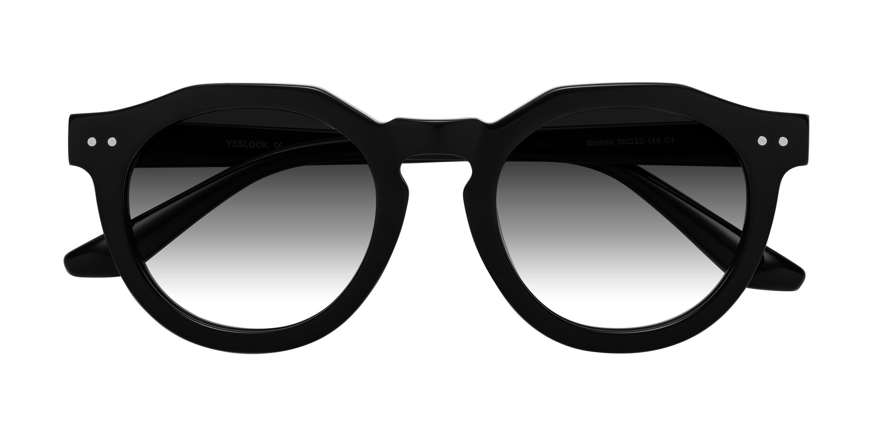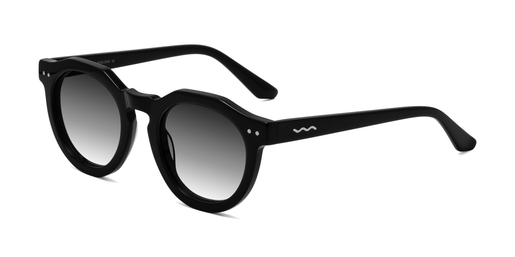 Black Acetate Round Geometric Gradient Sunglasses with Gray Sunwear Lenses