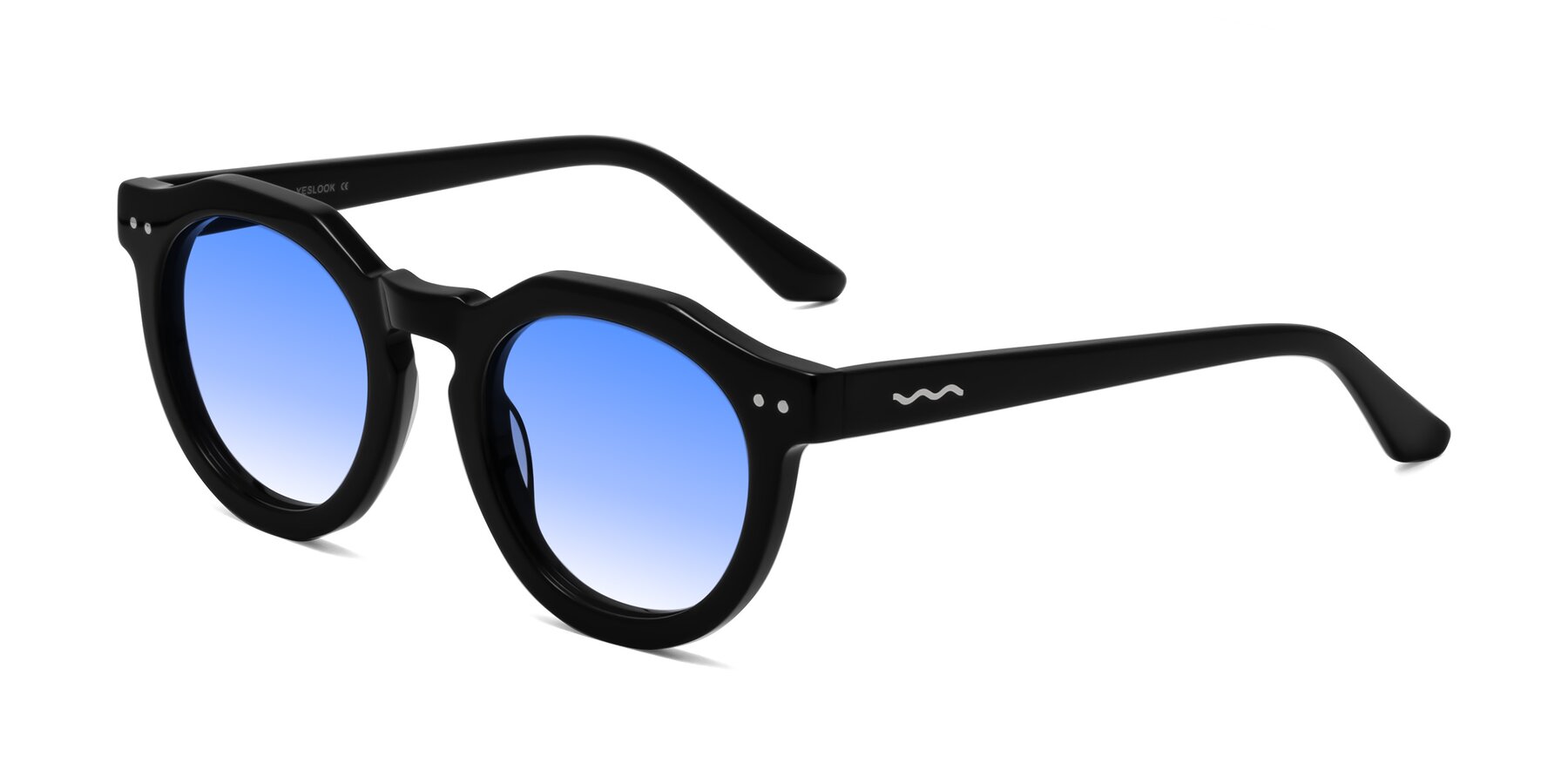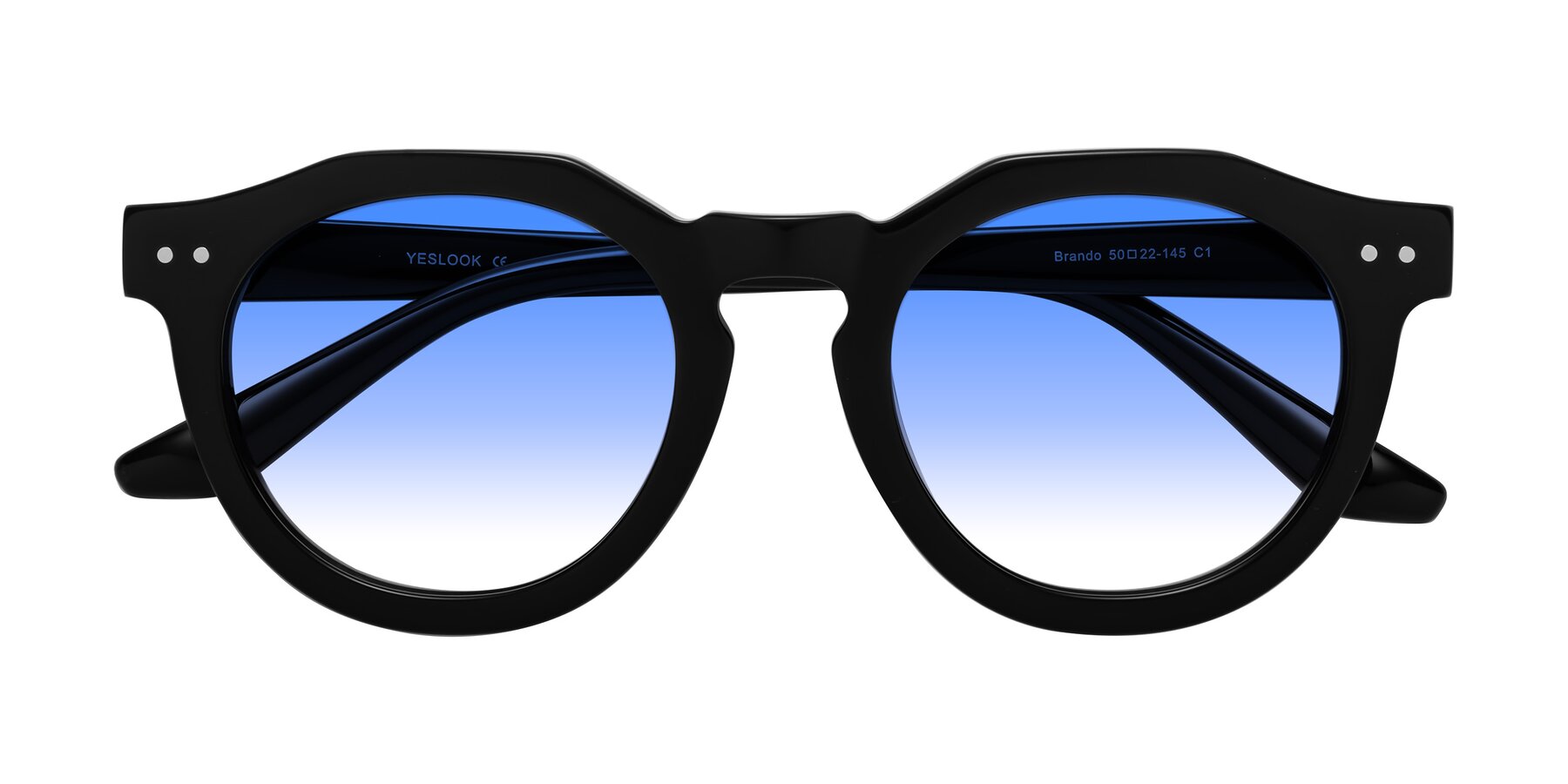 Black Acetate Round Geometric Gradient Sunglasses with Blue Sunwear Lenses
