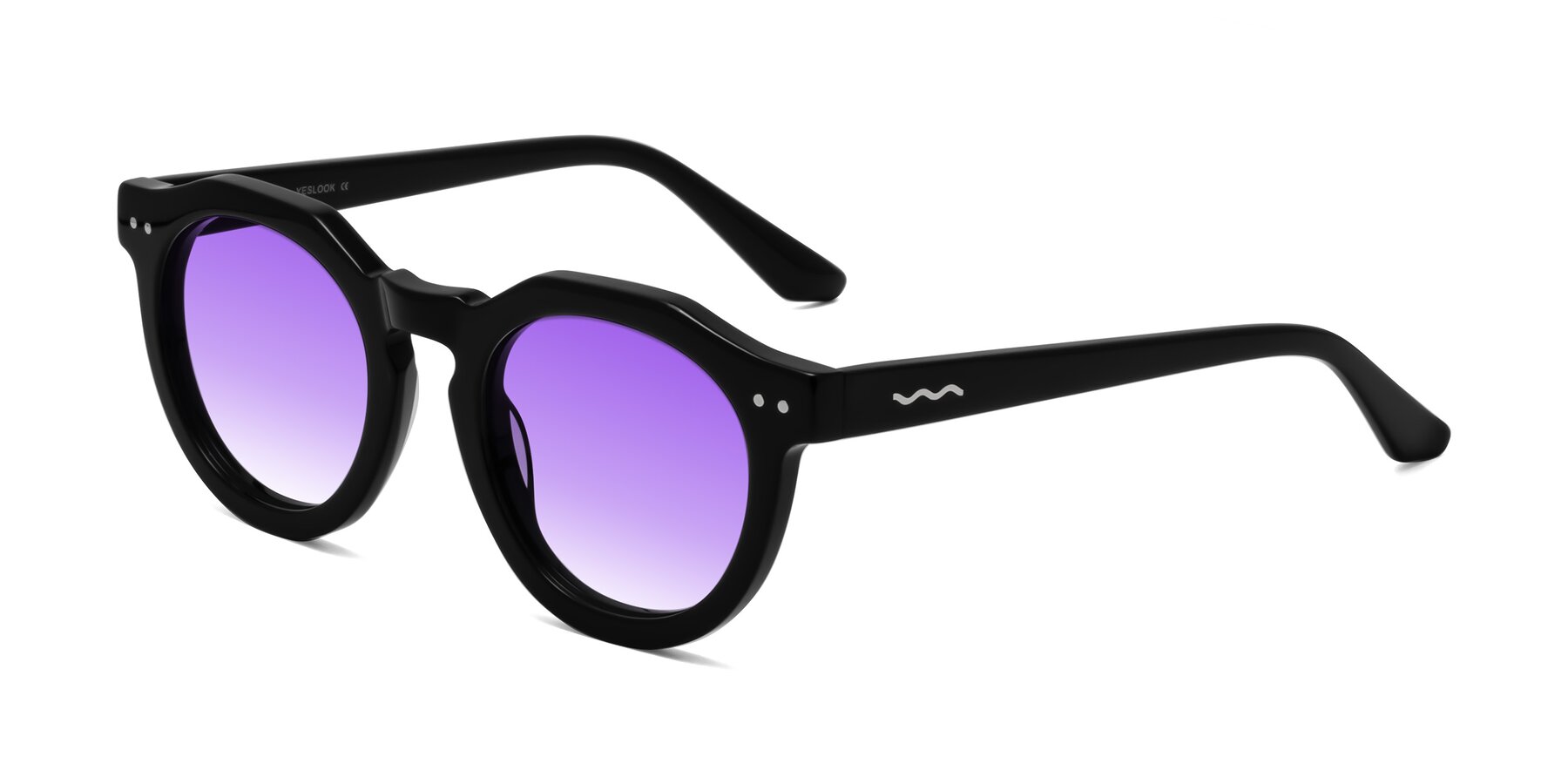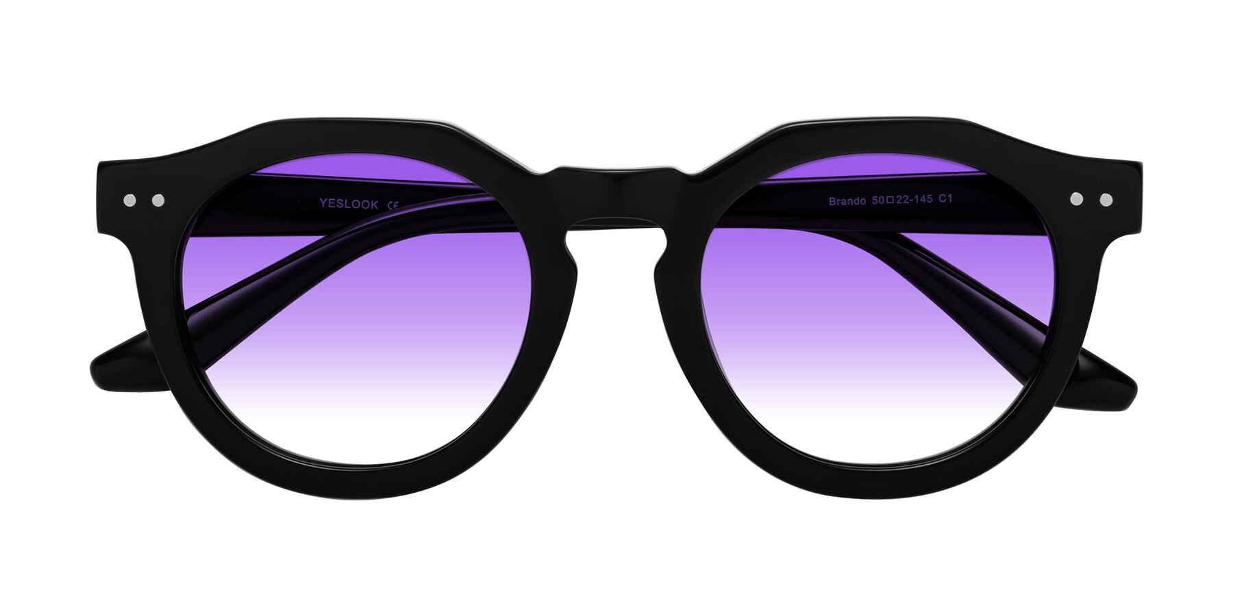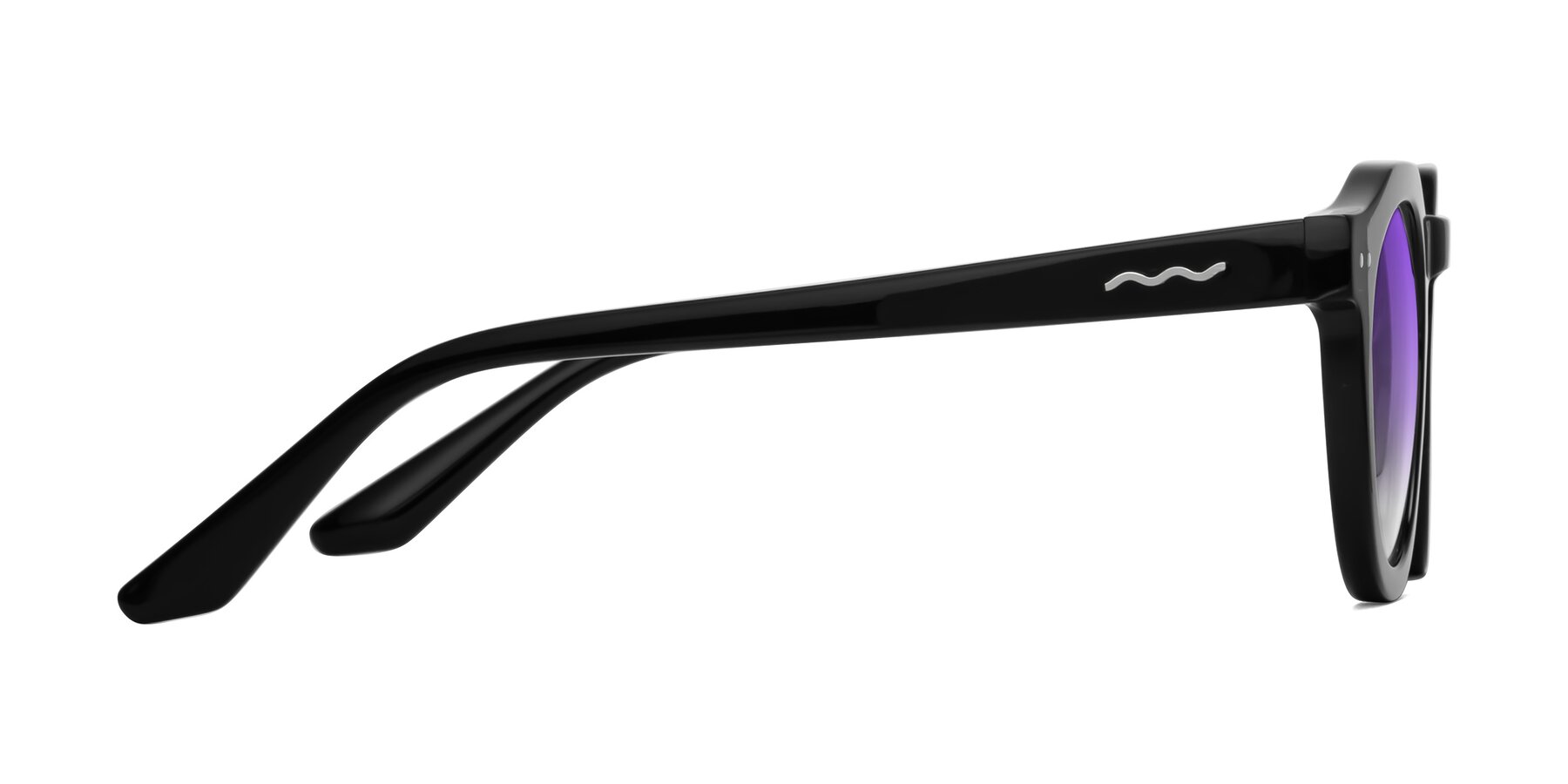 Black Acetate Round Geometric Gradient Sunglasses with Purple Sunwear Lenses