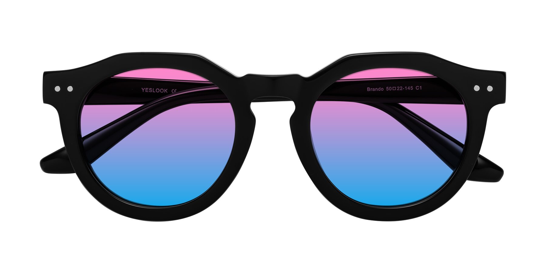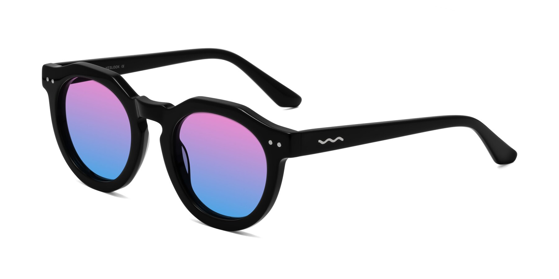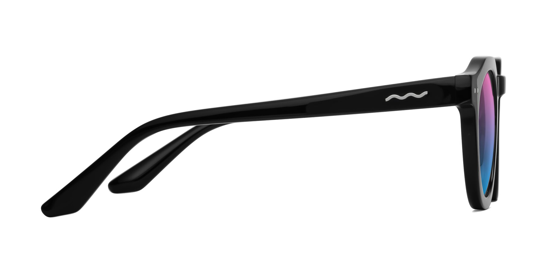 Black Acetate Round Geometric Gradient Sunglasses with Pink / Blue Sunwear Lenses