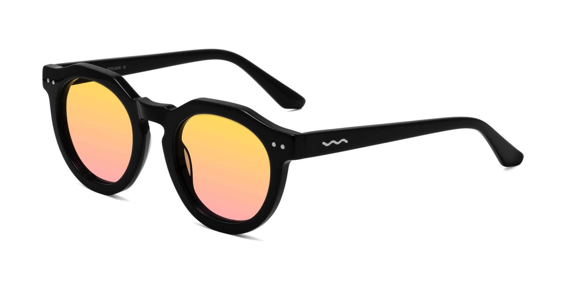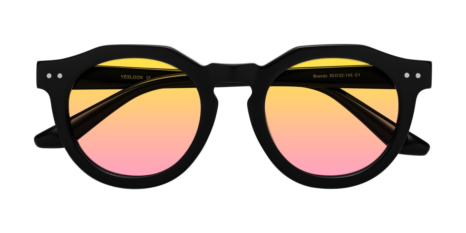 Black Acetate Round Geometric Gradient Sunglasses with Yellow / Pink Sunwear Lenses