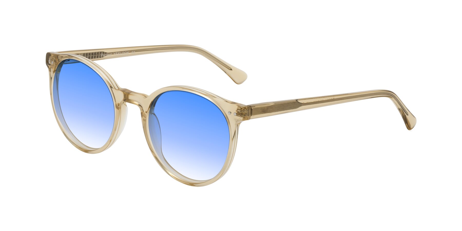 Champagne Retro-Vintage Acetate Round Gradient Sunglasses with Blue Sunwear Lenses