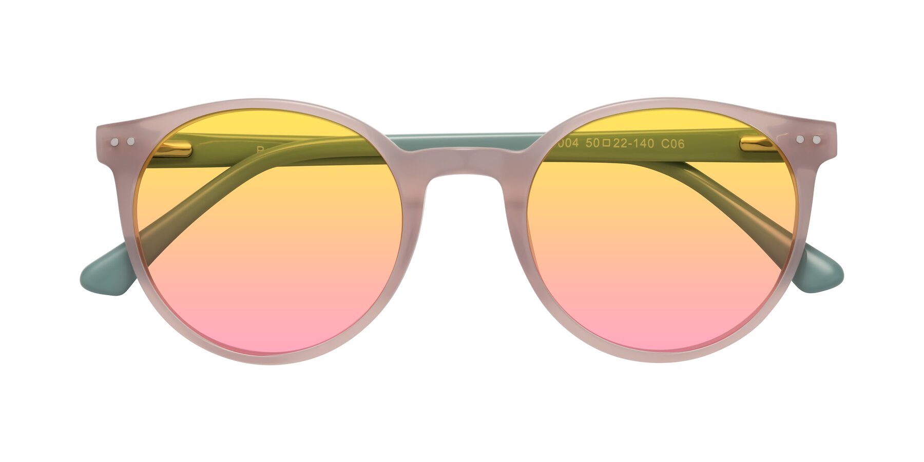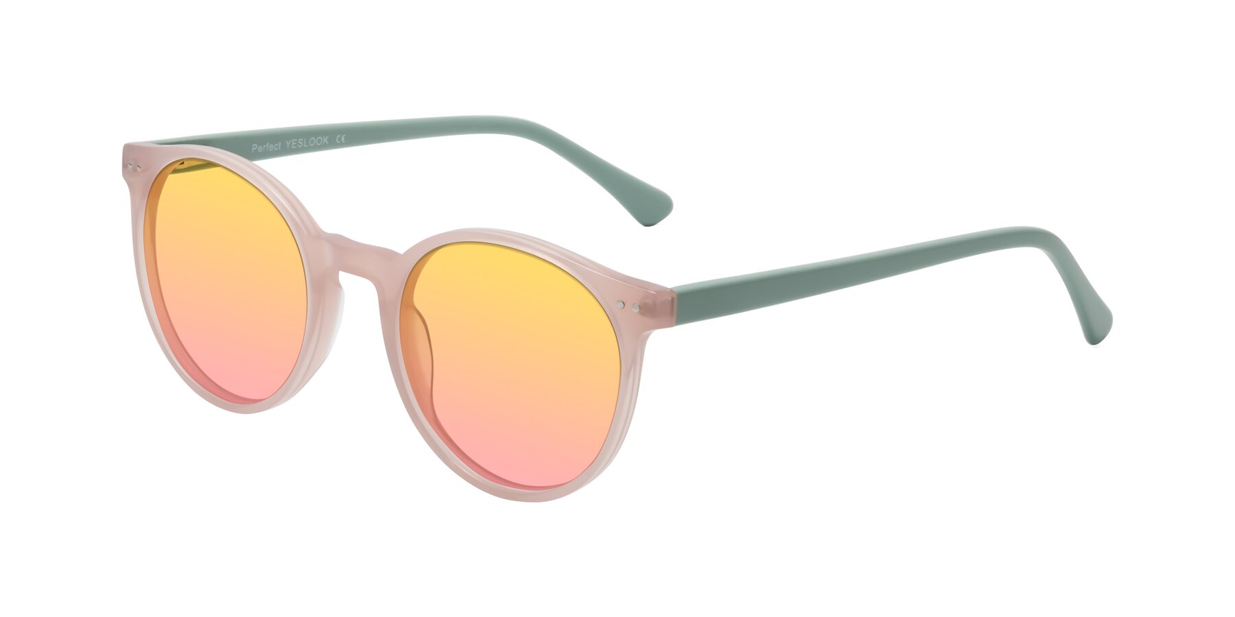 Orchid Pink/Foggy Mint Retro-Vintage Acetate Round Gradient Sunglasses with Yellow / Pink Sunwear Lenses