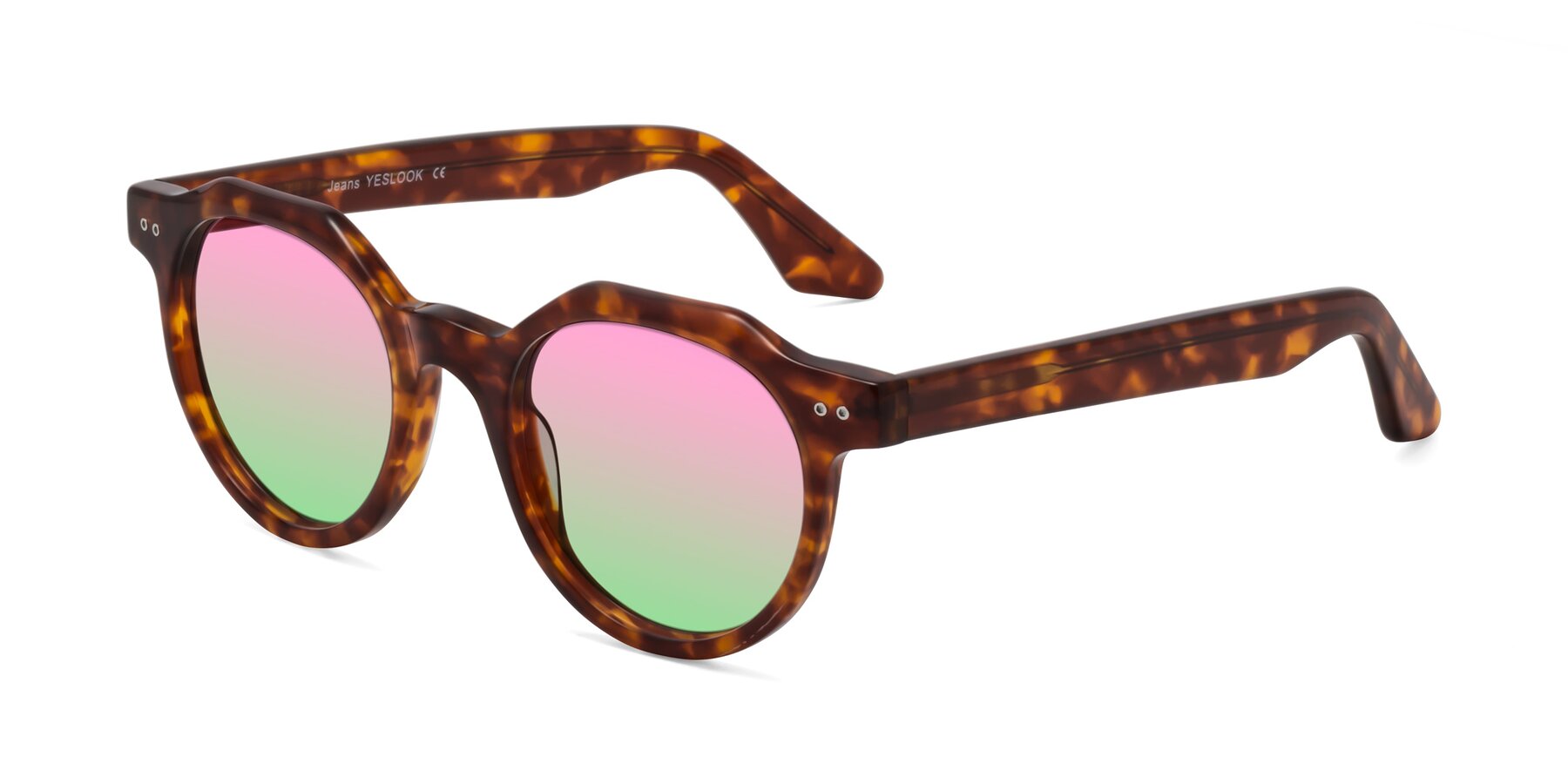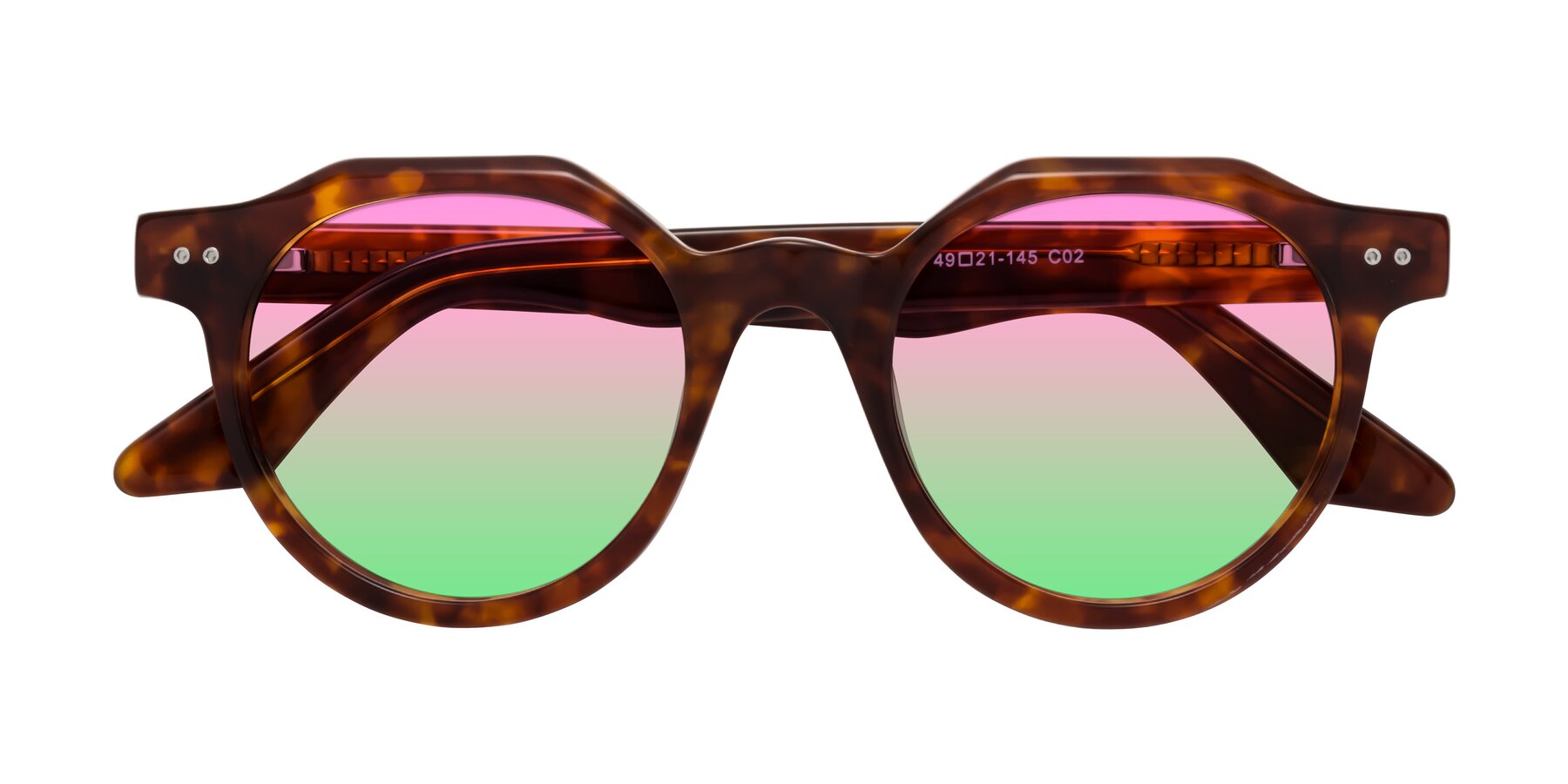 Tortoise Retro-Vintage Acetate Geometric Gradient Sunglasses with Pink / Green Sunwear Lenses