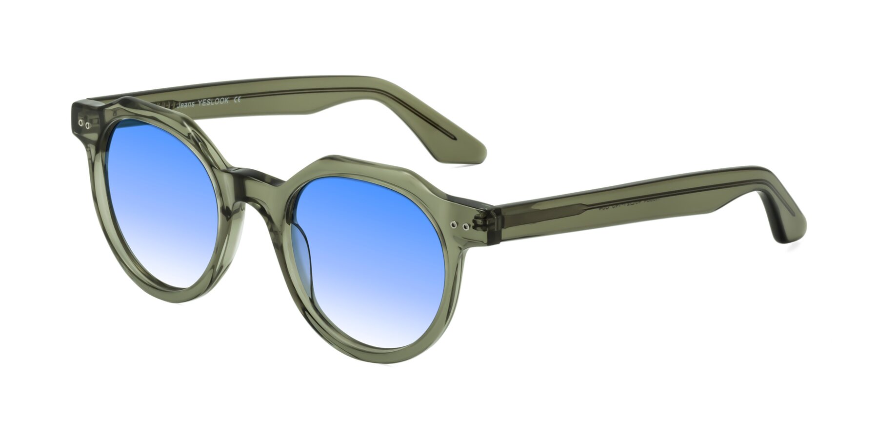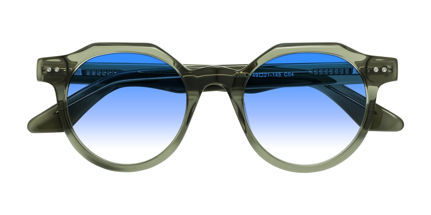 Grayish Green Retro-Vintage Acetate Geometric Gradient Sunglasses with Blue Sunwear Lenses